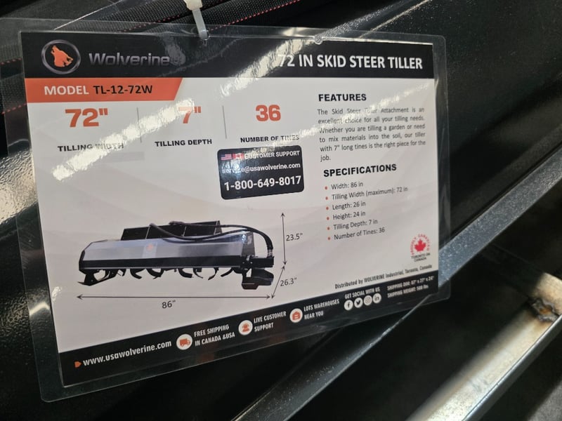 FACTORY DIRECT ** Unused 2026 WOLVERINE Tiller, TL-12-72W