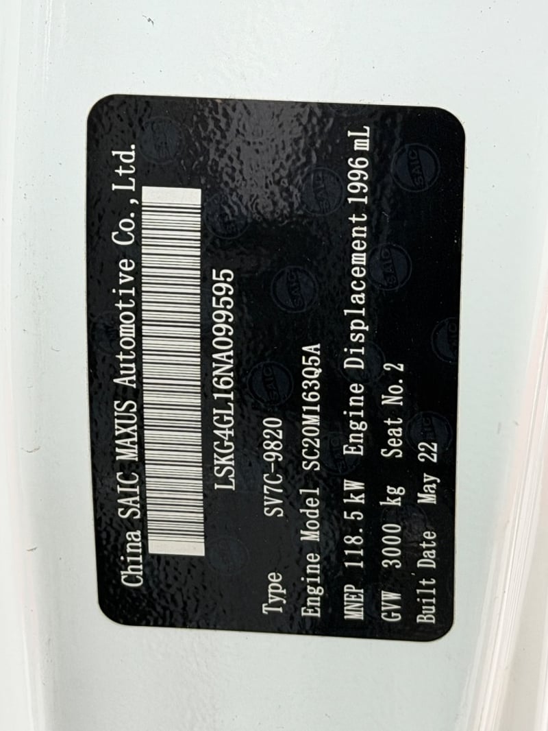 2022 LDV G10 SV7C G10+Year: 2022Make: LDVModel: G10Series: SV7CBadge: G10+ Body: 4-Door VanDrive Type: Rear wheel driveOdometer: Indicating 75,975 KilometersEngine: 2.0 I4 Turbo DieselTransmission: 8-Speed AutomaticColour: WhiteSeats: 2Description/extras: Air Conditioning, Power windows, SRS, Digital dash, Tinted windows, Cruise control, Alloy wheels, Towbar, Reverse camera. Timber Shelving in Rear, 2 x Titan Drawers Drivers Window Button Not Working, Passenger Slide Door Not Catching, Missing Rear Wiper, Panel Damage to Boot, Scratches & Scuff Marks to bodywork, Bonnet Brace missing Catch. VIN: LSKG4GL16NA099595ENG No: M9225025106(Key #B32x2 carrara)Lloyds stock #583430+1#PCV