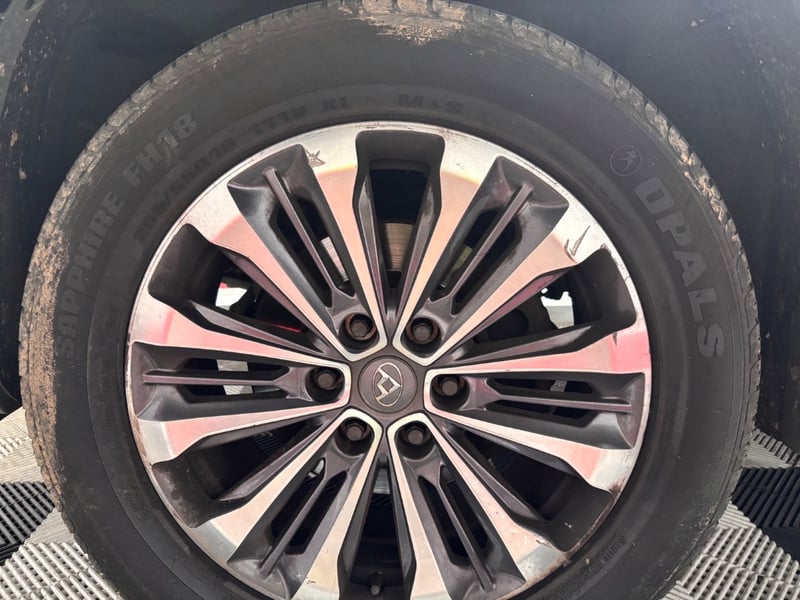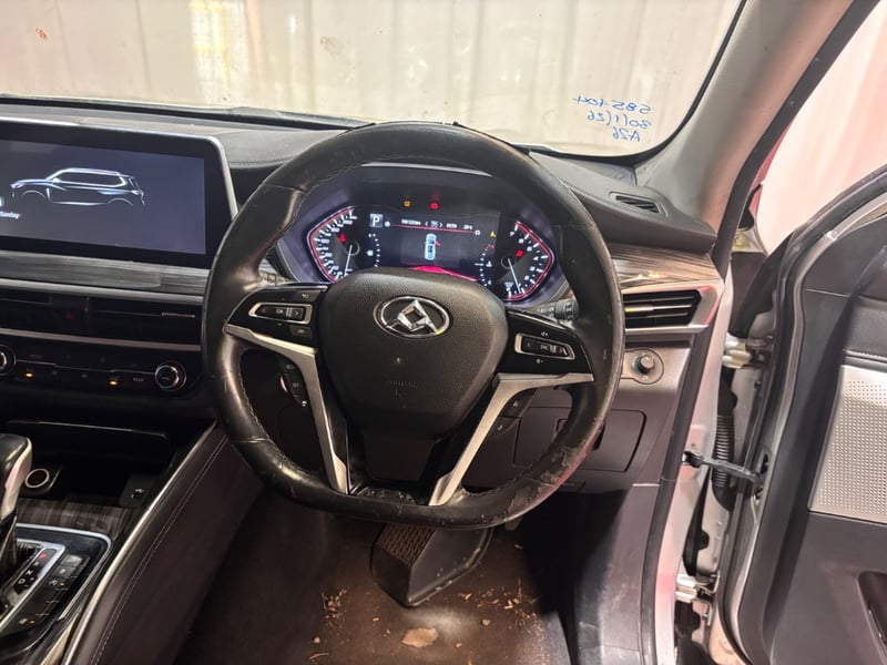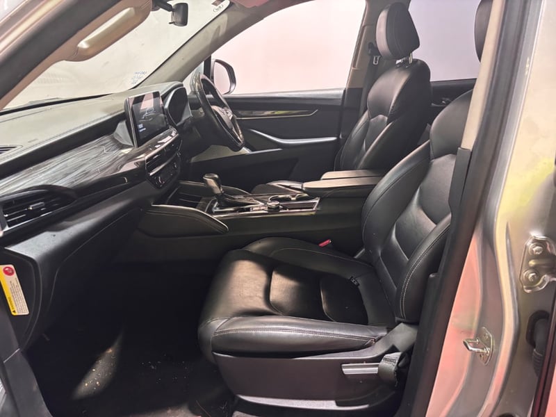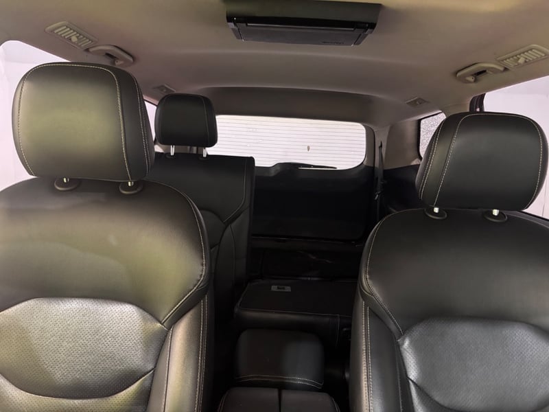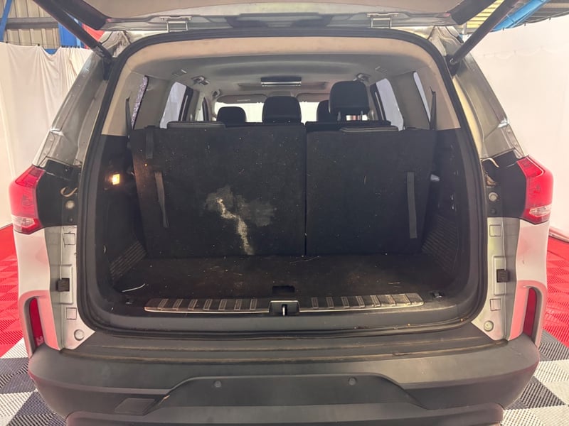 Multi-function steering wheel with cruise and media controls, faux mable accents, 7 seats, electric side mirrors, front passenger and driver Vanity mirrors, maps lights, loads of storage, rear ac and usb port, drop down dvd player roof mounted. Full sized spare chaise mounted, metal look scuff plates and more. Drivers seats has had leather repaired, scratches, scuffs and marks on interior surfaces, carpet is wornin places, drivers foot rest has come off, steering wheel leather has peeled, leather on rear seats is faded and marked. Exterior paint work is scratched and scuffed, bonnet has stone chips, LHS rear quarter window is shattered, motorized tailgate no longer works, rims are scuffed, Exterior plastics have all faded to grey, as have the side steps.
