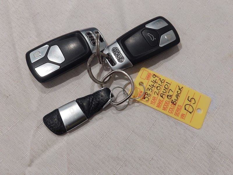 2016 Audi Q7 4MB0E1 TDI Year: 2016 Make: Audi Model: Q7 Series: 4MB0E1 Badge: TDI Body: 4-Door Wagon Drive Type: All wheel drive Odometer: Indicating 162,608 Kilometers Engine: 3.0 V6 Turbo Diesel Transmission: 8-Speed Automatic Colour: Black Seats: 7 Description/extras: Air Conditioning, Power windows, SRS, Sat Nav, Digital dash, Power seats, Tinted windows, Cruise control, Leather interior, Climate control, Alloy wheels, AUX / USB, Reverse camera, Central locking, Log books/Owners manual. Multi Function Steering Wheel Exterior Panel Scratches. Price Guide - $17,900 - $21,150 (Based on Unmodified Vehicle) VIN: WAUZZZ4M8HD007343 ENG No: CRT102278 (Key #D5x2 carrara) Lloyds stock #583449+1 #PCV