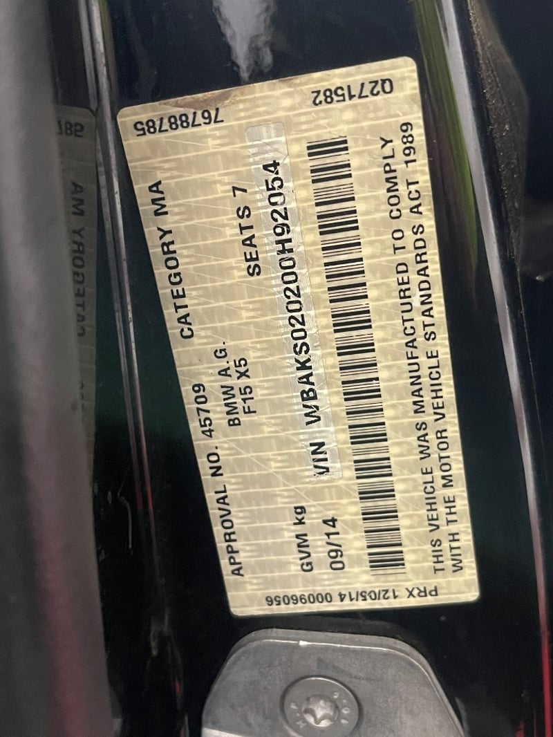 2014 BMW X5 F15 sDrive25d M Sport Year: 2014 Make: BMW Model: X5 Series: F15 Badge: sDrive25d M Sport Body: 5-Door Wagon Drive Type: Rear wheel drive Odometer: Indicating 200,582 Kilometers Engine: 2.0 Turbo Diesel Transmission: Automatic Colour: Black Seats: 7 Description/extras: Air Conditioning, Power windows, Power seats, Cruise control, Reverse camera, Central locking, Log books/Owners manual. VIN: WBAKS020200H92054 ENG No: 76788785 (Key #A32) Lloyds stock #993631+1 #PCV