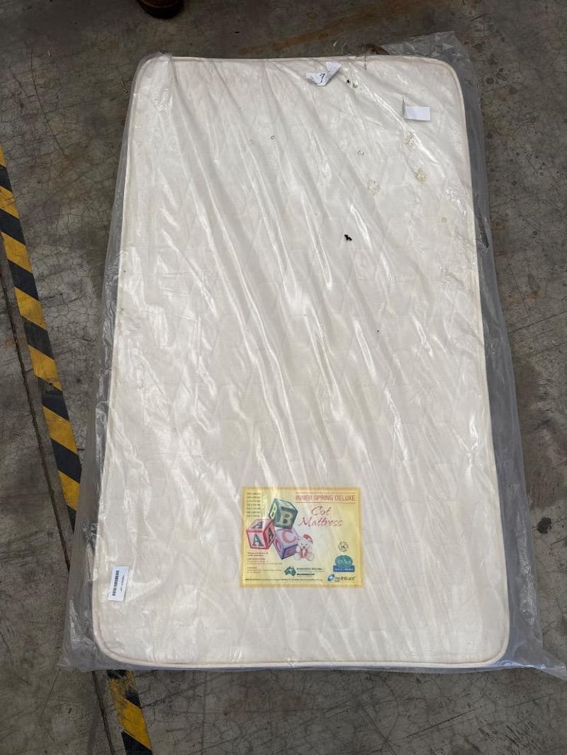 RRP: $189, Mattress, Kangaroo, Inner Spring Deluxe, Cot Mattress. Dimensions approx; 130 x 77 x 13 cm