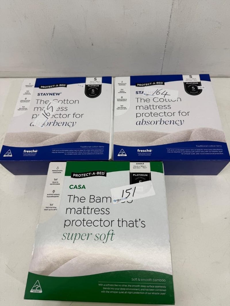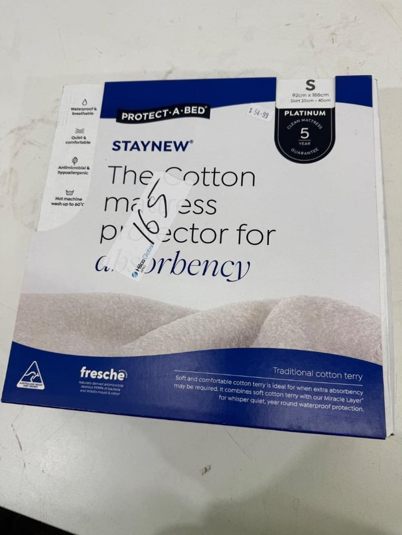 RRP: $194, Protect-A-Bed Bamboo Jersey Mattress Protector - Single, Protect-A-Bed Cotton Terry Mattress Protector - Single.
