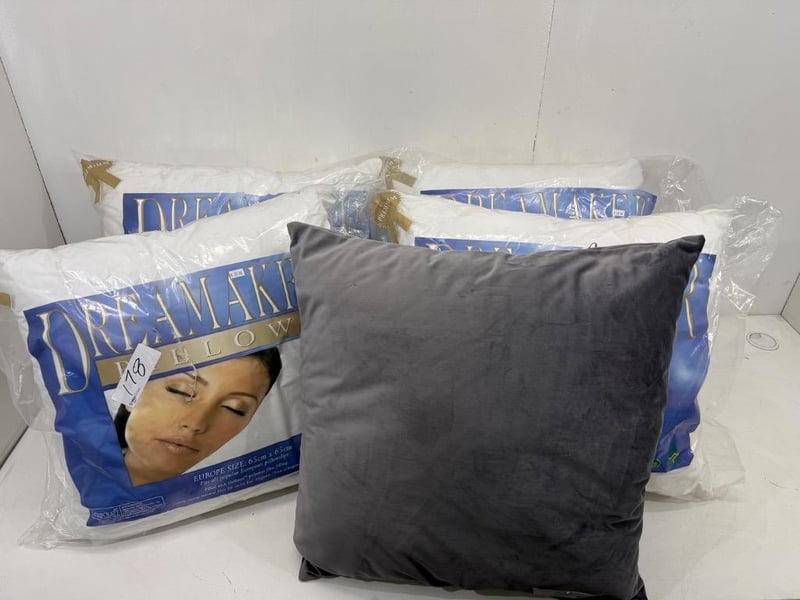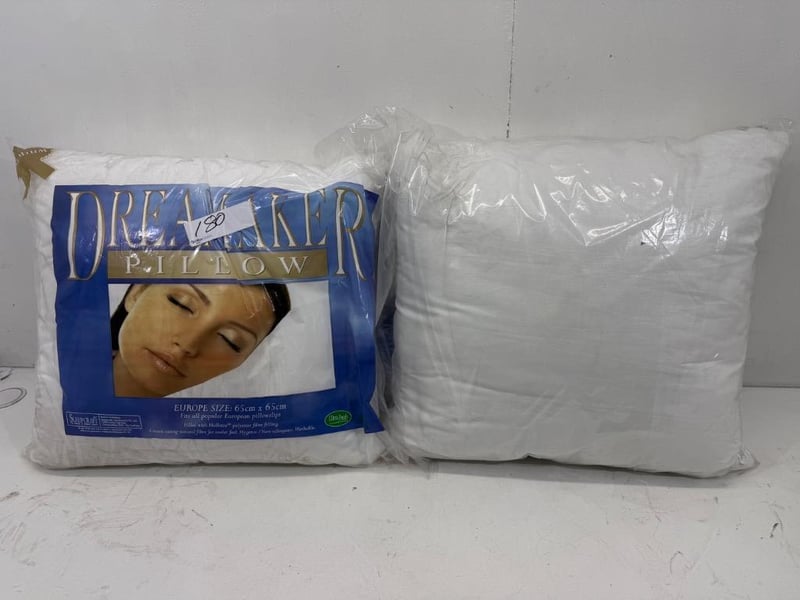 RRP: $160, Dreamaker European Pillow, Size 65cm x 65cm. Quantity: 5 pillows, Sold as lot.