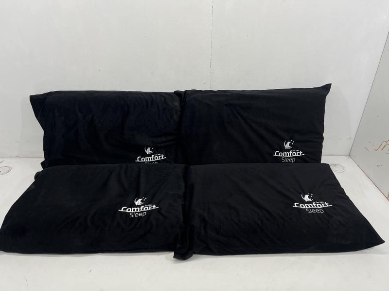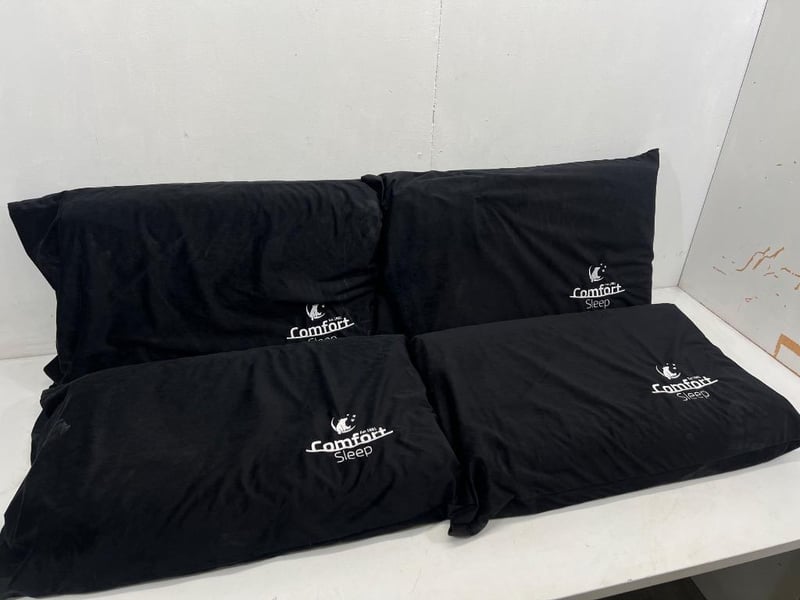 Pillows, comfort sleep, includes; pillows, pillow cases, black colour Quantity; 4, sold as lot