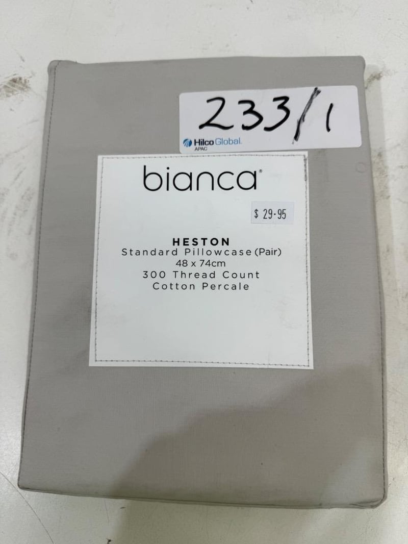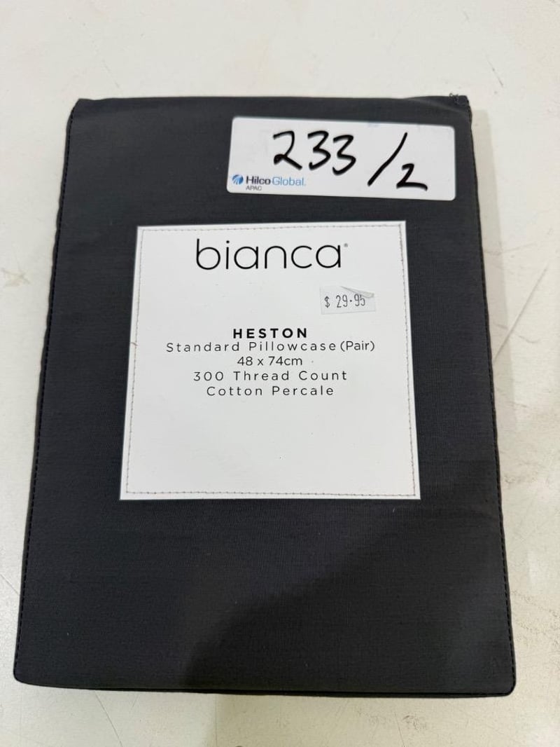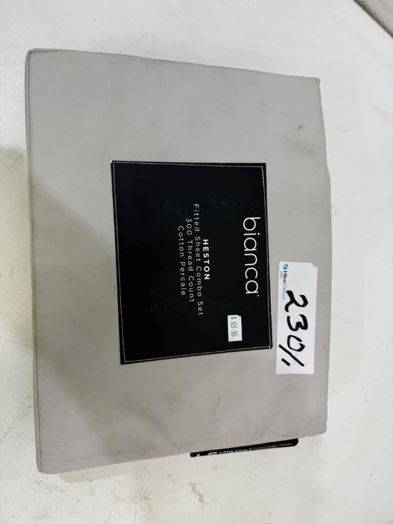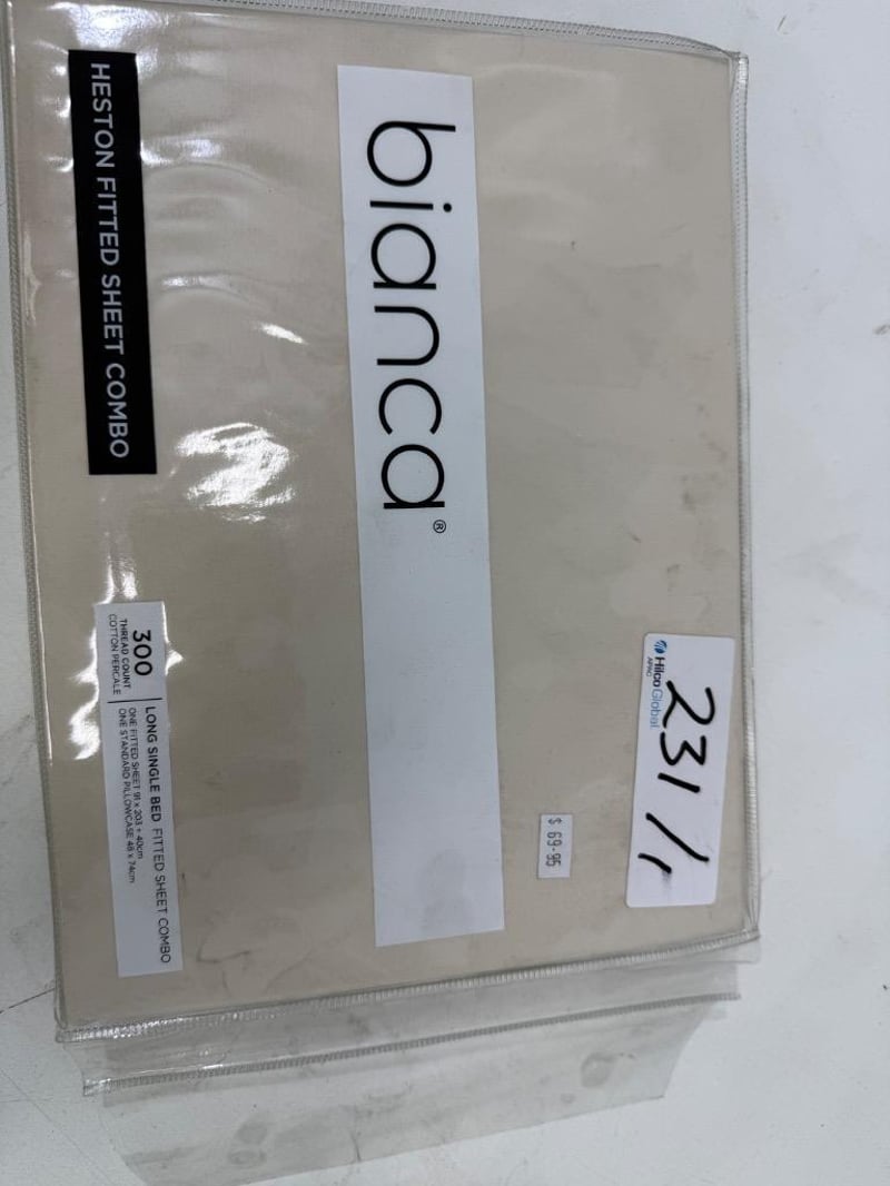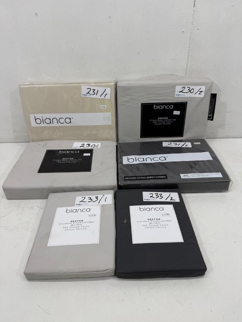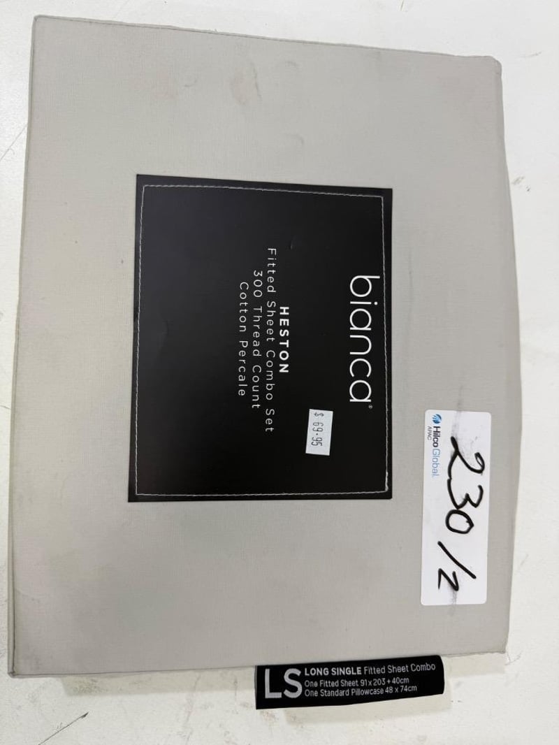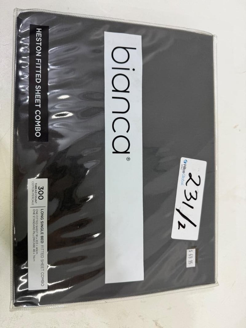 RRP: $339, Qty of 4 x Bianca Heston Fitted Sheet Combo Set - Long Single, Qty of 2 Bianca Pillow Case (Pair) Quantity-6 Sold as lot