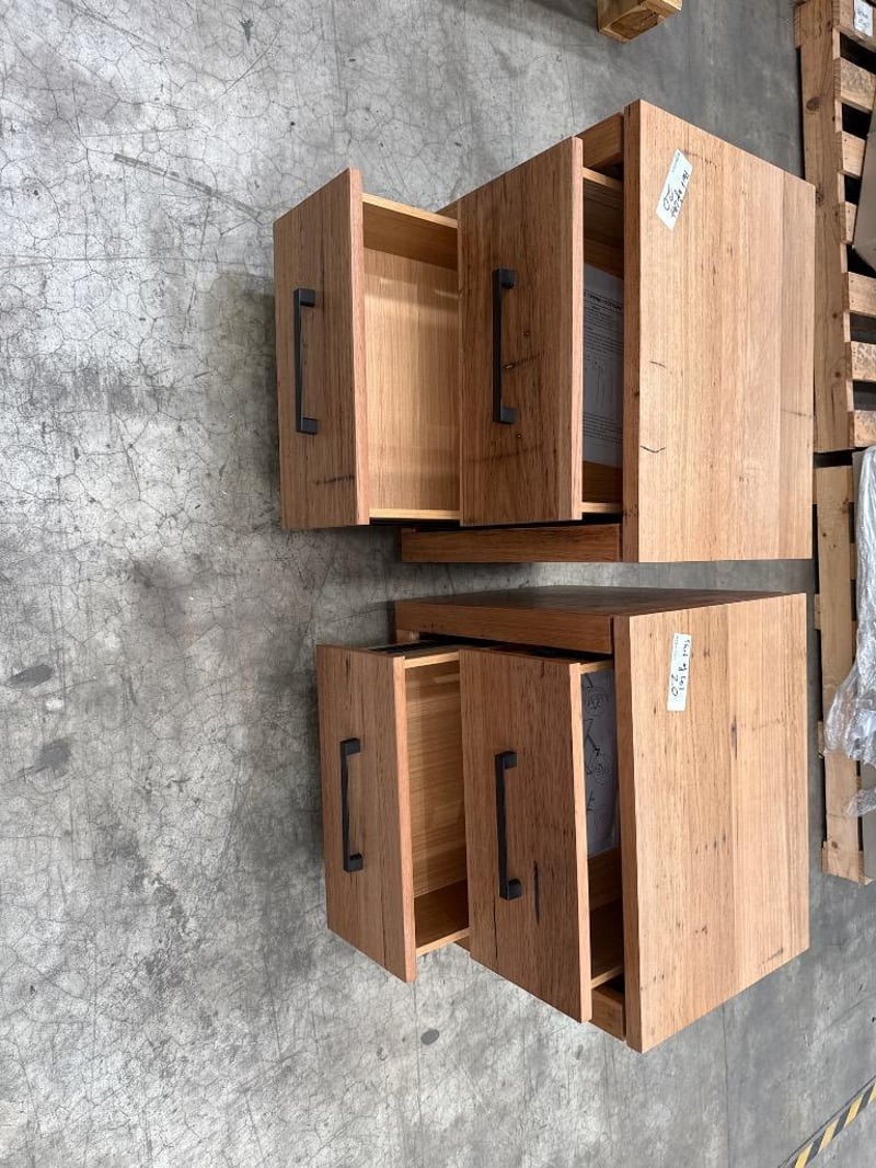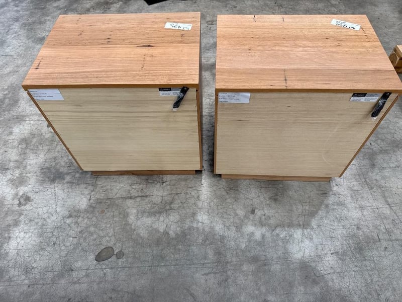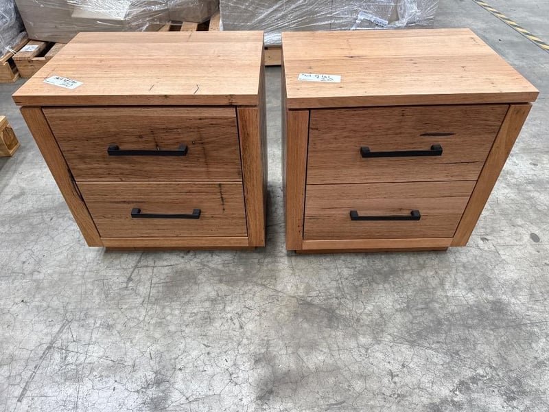 Bedside table, Brand unknown, Timber type, Two drawers. Approx Dimensions- 46h X 56w X 40d. Quantity: 2, Sold as lot