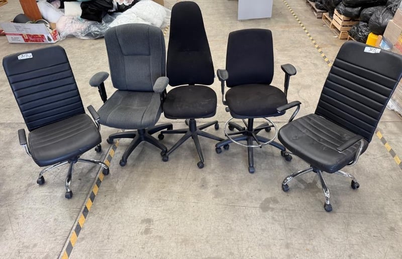 RRP: $250, 5 Office Chairs Various Styles / designs + 2 Office Mats.