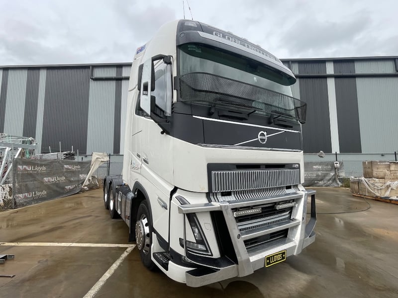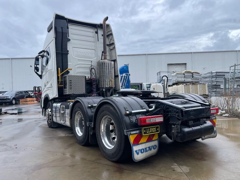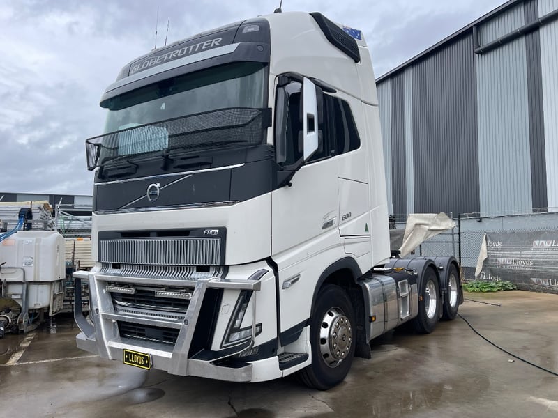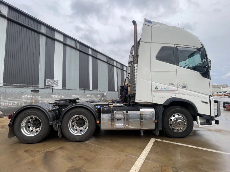 2023 Volvo FH16 600 Globetrotter 6x4 Cabover Sleeper Year: 2023 Make: Volvo Model: FH Body: Cabover Sleeper Drive Type: 6x4 Odometer: Indicating 592,444 Kilometers Engine Hours Indicating: 8116 H Engine: Turbo Diesel 600HP Transmission: Automatic Colour: White Seats: 2 GVM: 27900 KG GCM: 70,000 KG VIN: YV5RP80D4PD216241 ENG No: D16160069 Description/extras: Stone Guard, Bullbar, lightbar, Icepack, turntable, Guardian System, Air system malfunction dash light Lloyds stock #991194+1 #TransportNTrailers (Key CTM 13)
