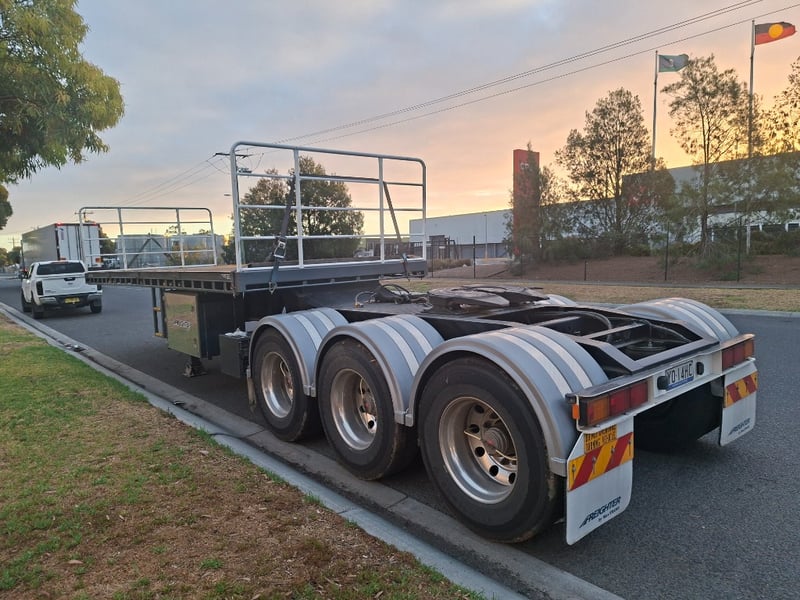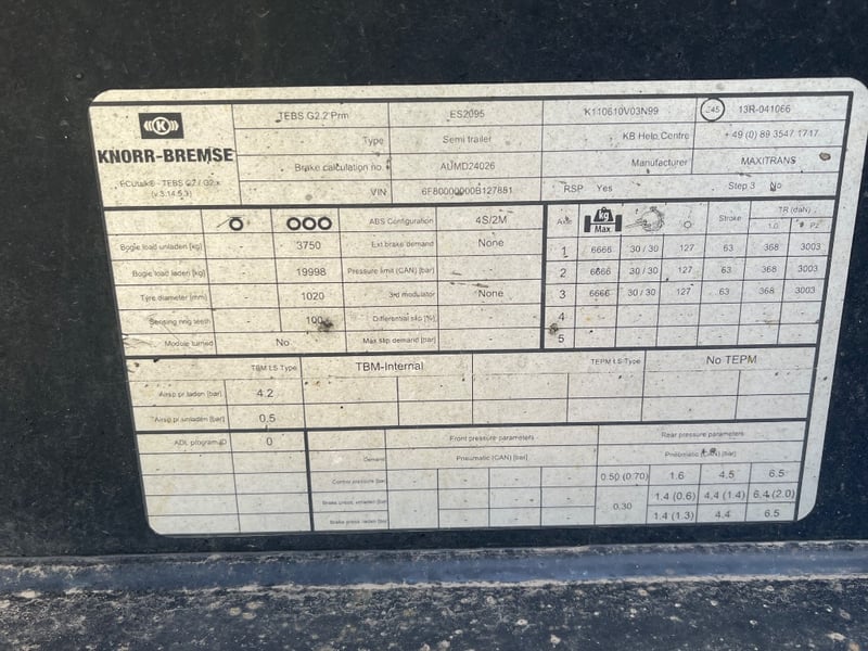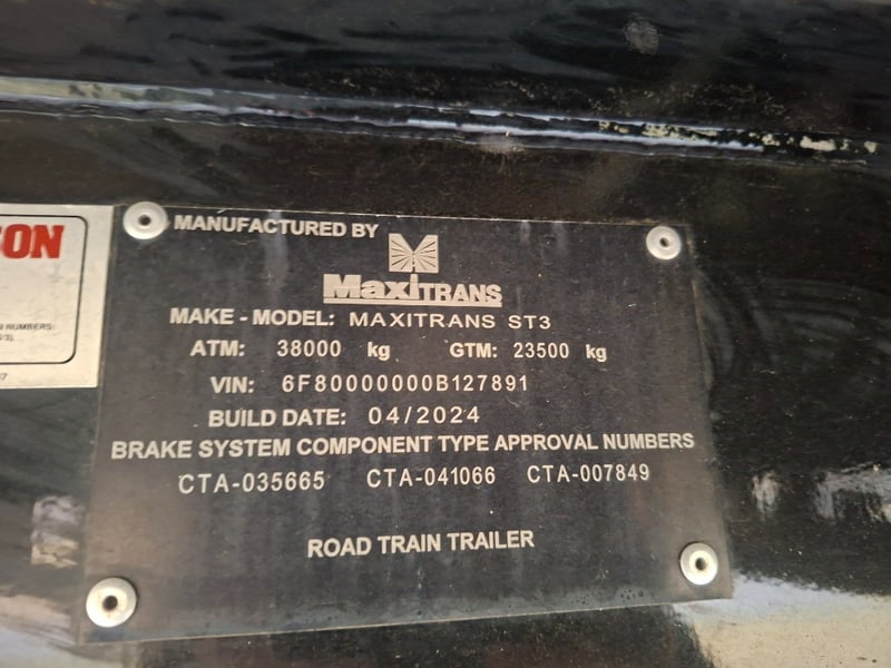 2024 MaxiTrans Triaxle Flatbed A Trailer Year: 2024 Make: MaxiTrans Model: ST3 Body: Flatbed A Colour: Grey Configuration: Tri axle Suspension: Air Chassis No.: 6F80000000B127881 ATM: 38,000kg GTM: 23,500 kg Description: Headboard, JOST turntable, Right Weigh scales, x2 toolbox, Pullout storage, ATP system. Total length approx : 10.4 m or 33 feet SOLD UNREGISTERED