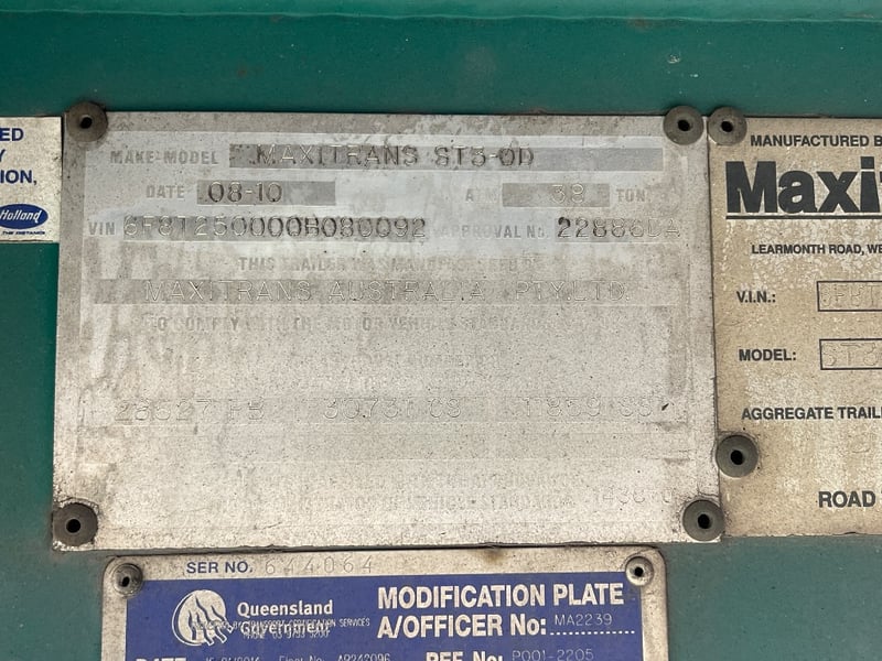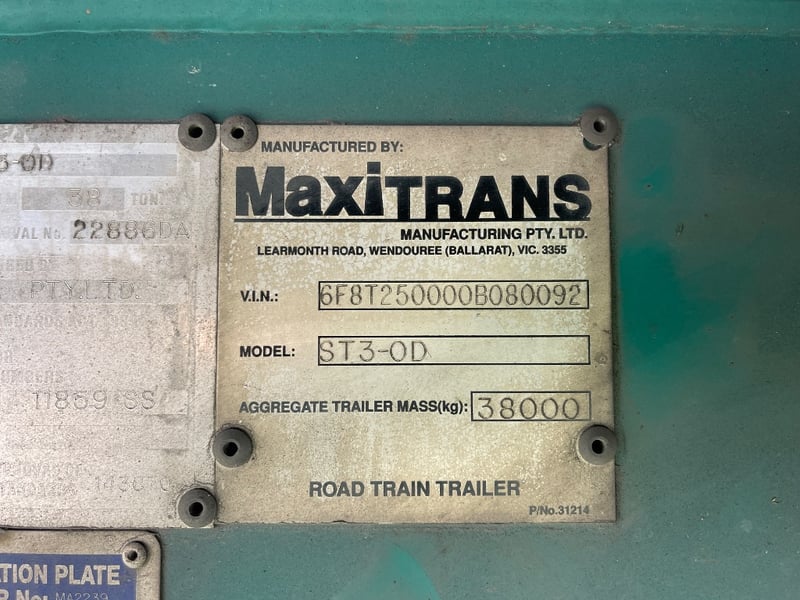 2010 Maxitrans ST3-OD Triaxle Flatdeck B Trailer Year: 2010 Make: Maxitrans Model: ST3-OD Body: Flatbed Configuration: Triaxle Suspension: Airbags VIN: 6F8T250000B080092 Description/Extras: 2x undercarriage storage lock boxes, manual legs ATM: 38000kgs Dimensions: 1480cm L x 250cm W x 280cm H (from ground to top of headboard) Length: 48ft