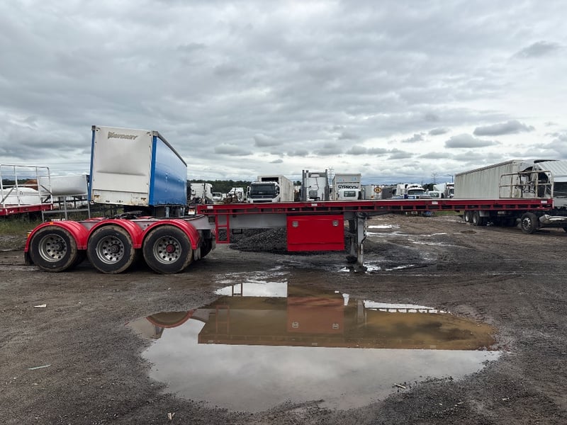 2005 Maxitrans ST3 Flatdeck A Trailer Year: 2005 Make: Maxitrans Model: ST3 Body: Flatbed Suspension: Airbag Length: 10.4m or 33ft ATM: 38000kg. VIN: 6F8T250005B070338 Description: Air gauge, 2x toolbox, turntable.