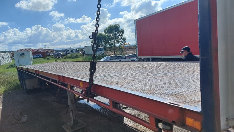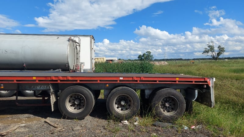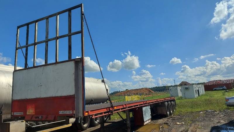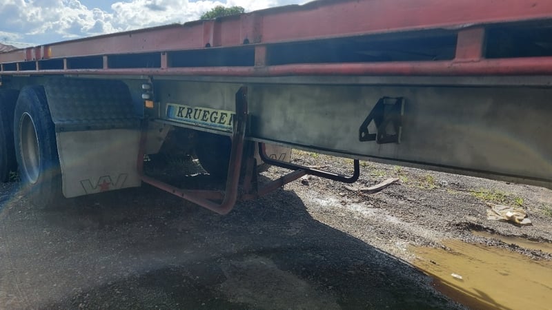 1975 Kruger Flatbed B trailer Year: 1975 Make: Kruger Model: Unsighted Body: Flatbed Configuration: Triaxle Suspension: Airbags Length: 45ft VIN: 6FH9079DA4M009913 Description/Extras: undercarriage storage lock box, manual legs, No VIN plate sighted