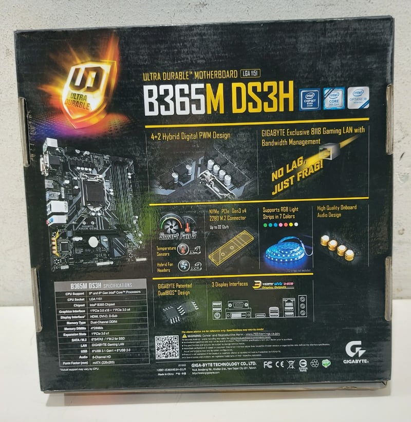 Socket, motherboard, gaming, Gigabyte, model: B365M DS3HMay be missing pieces Note: untested, signs of wear
