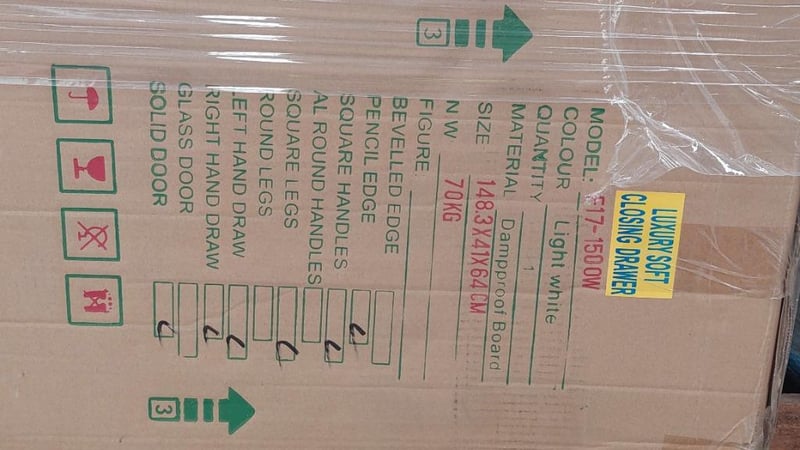 SK17-1500W-SD, Vanity, White, qty 1, F17-1500W, Vanity, x2, Total qty 3 to Pallet, Sold as Pallet Lot
