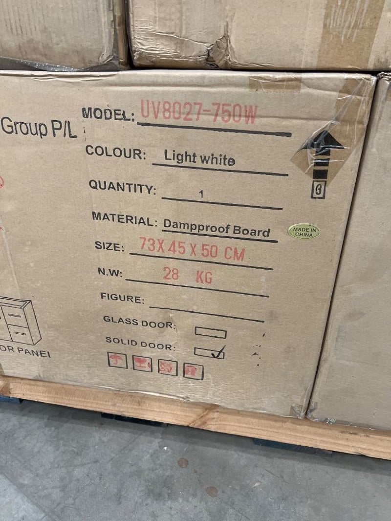Vanity, brands include; SI, sunny group, models include; WH8027-780W, SH27-750WL-WB5, UV8027-750W, assorted styles Quantity; 12 to pallet, sold as lot