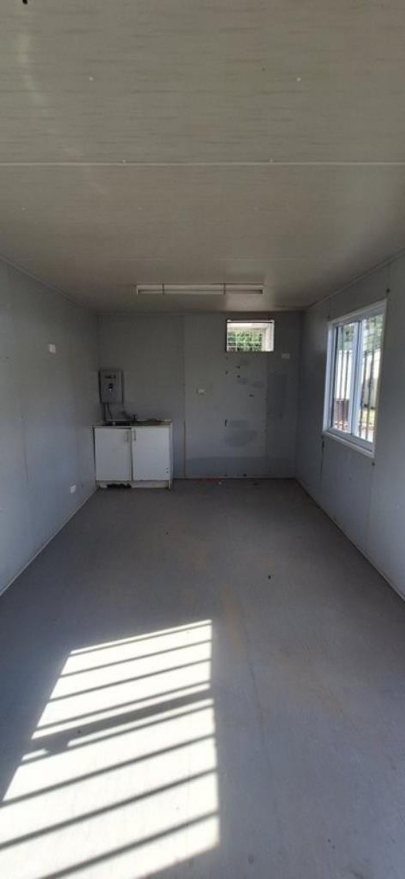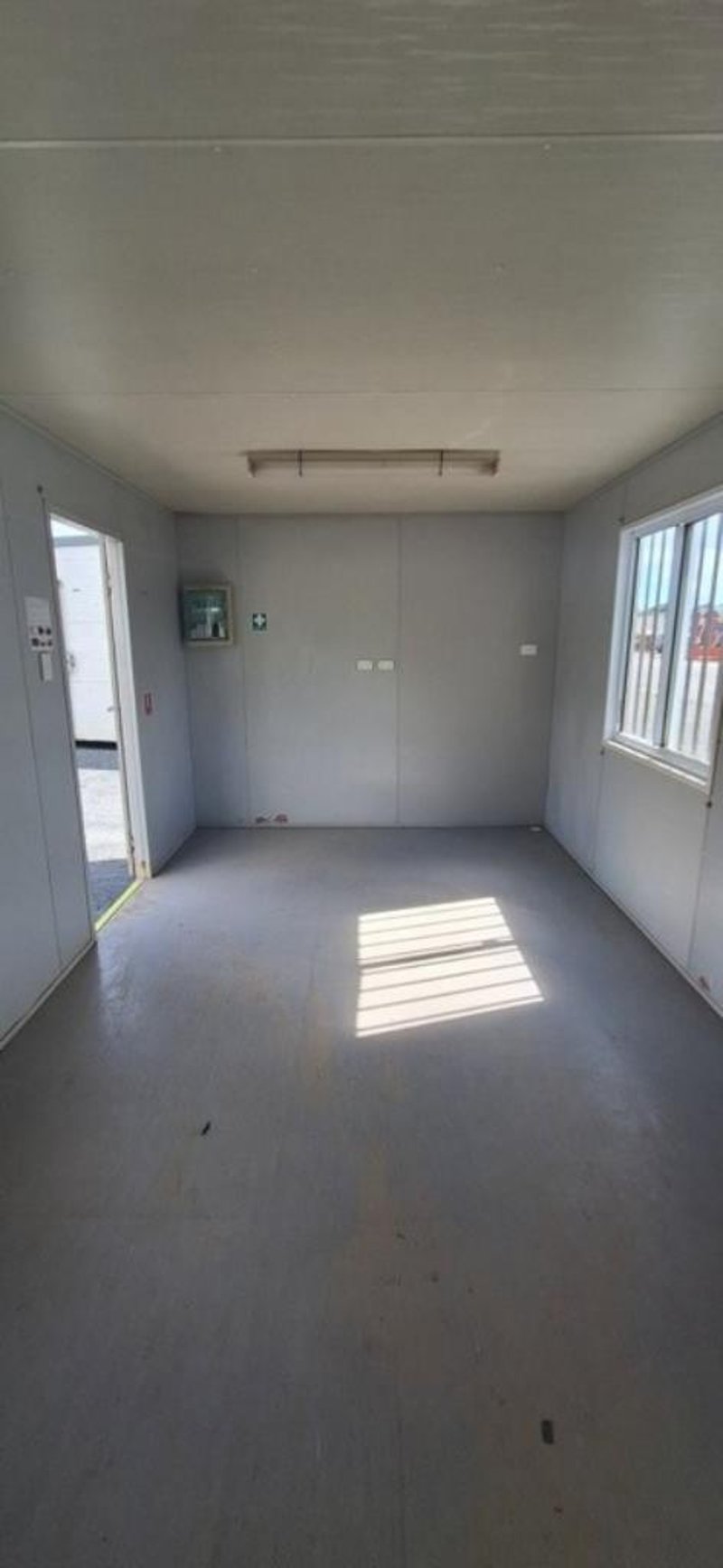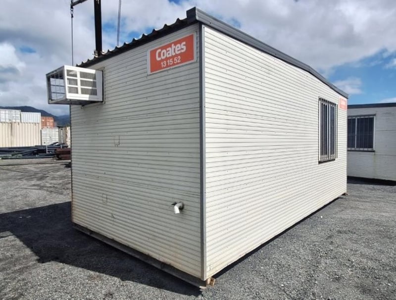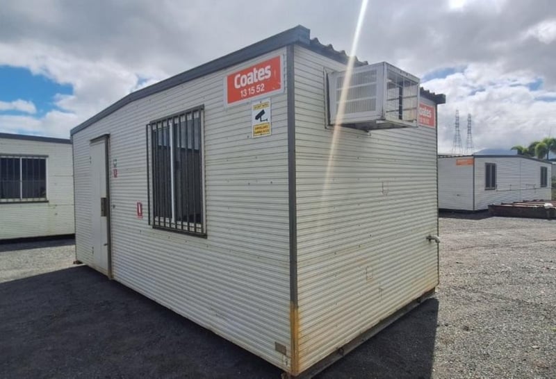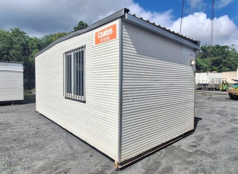 Portable Building/Site Office, Brand; APB, 6m x 3m, Single Door Entry, 2 x Sliding Windows c/w Security Bars, Structurally Good, Interior Fair/Good, Cyclone Rated, steel framed