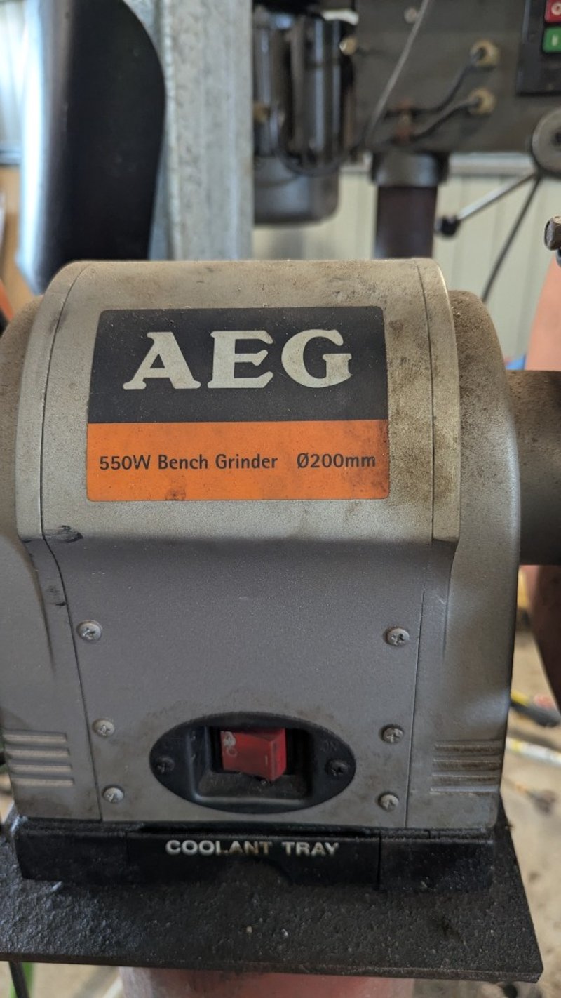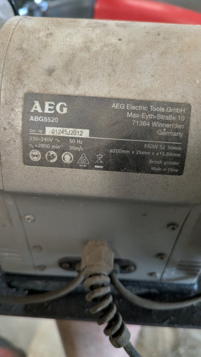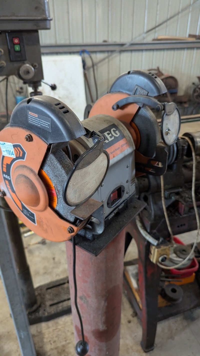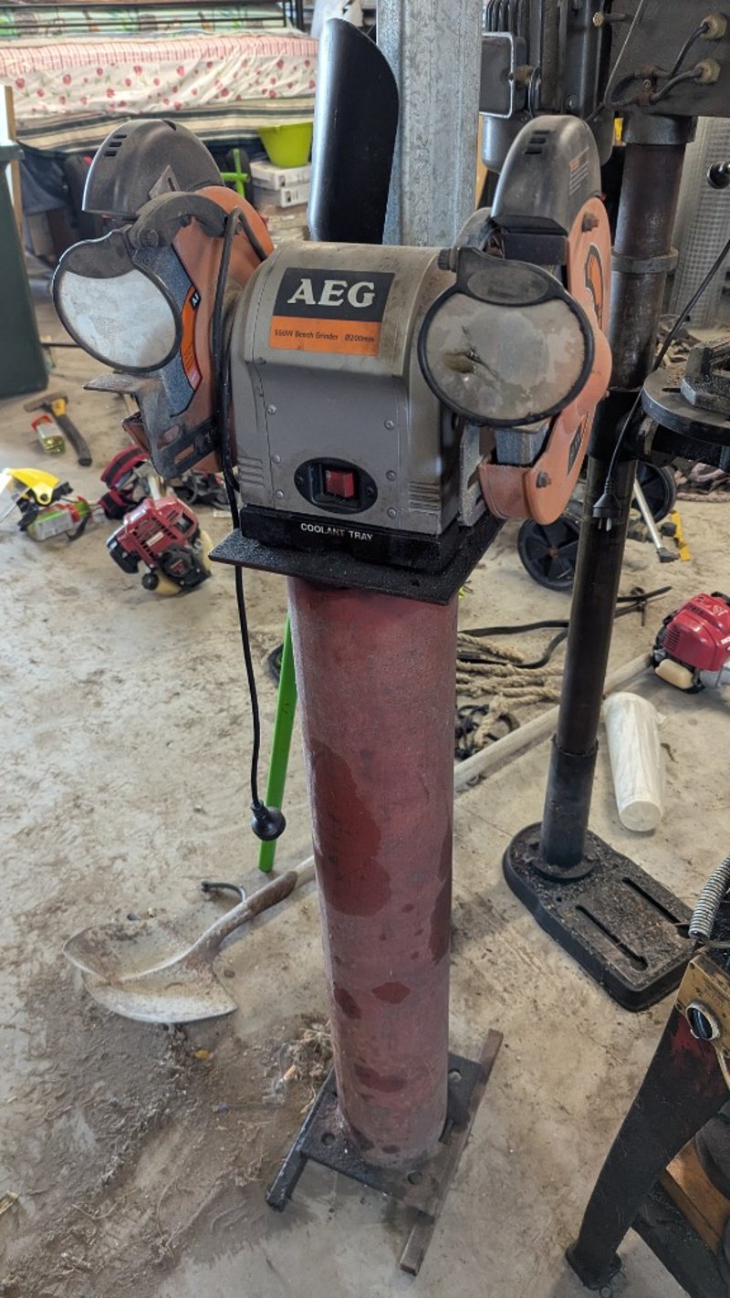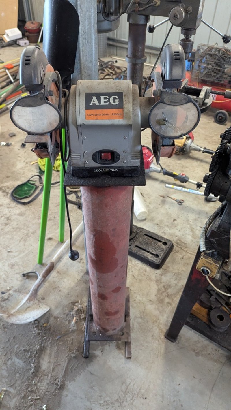 Bench Grinder on Pedestal, AEG, Model: ABG5520 550W, 200mm Dimensions: 140cm(H)×40cm(W)×40cm(D),#Plant&Equipment#Onsite
