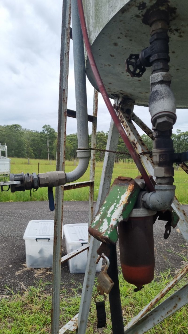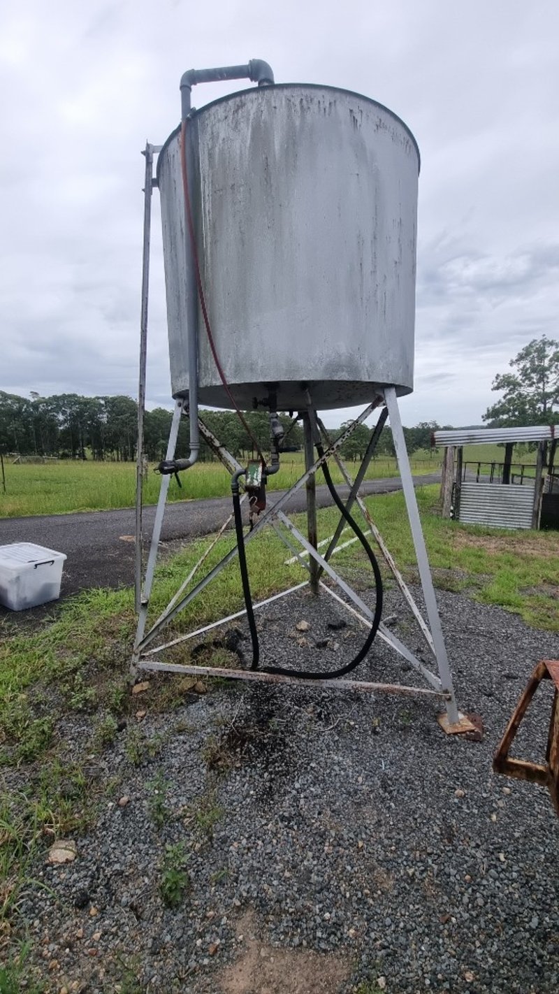 Overhead Diesel Storage Tank, On Stand, With Hose and Gun, Intake Pipe, Ladder, Approx 1500 Litres, Dimensions: 310cm(H)×190cm(W)×190cm(D) #Plant&Equipment #Onsite