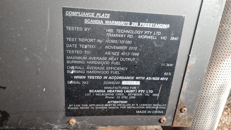 Scanda Warmbrite 200 Free-standing Fire Place, ×10 Exhaust#Plant&Equipment#Onsite