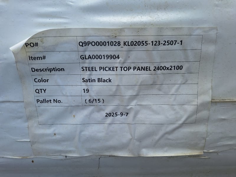 Steel Picket Top Panels, Satin Black, 2400mm x 2100mm, Quantity x 19