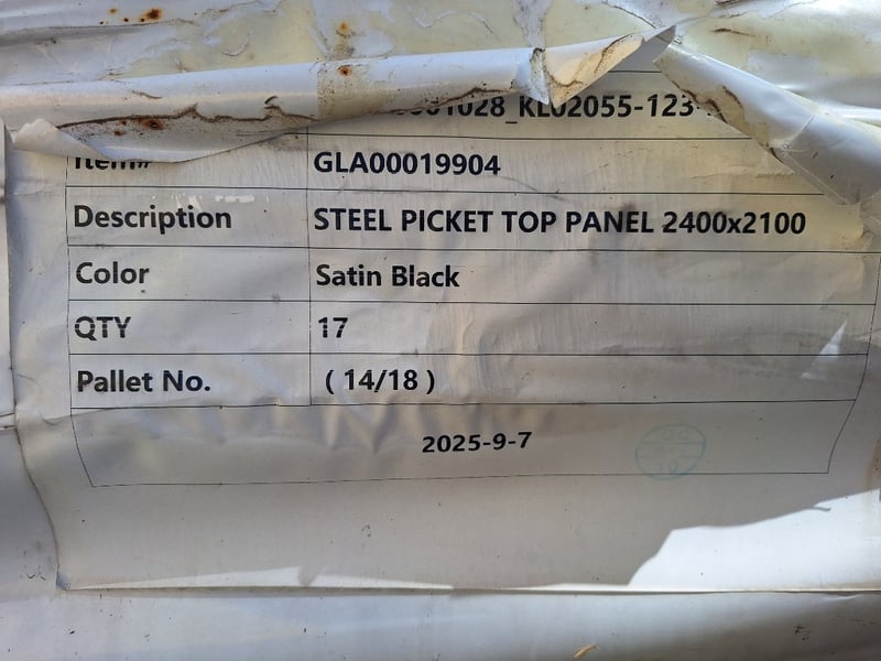 Steel Picket Top Panels, Satin Black, 2400mm x 2100mm, Quantity x 19