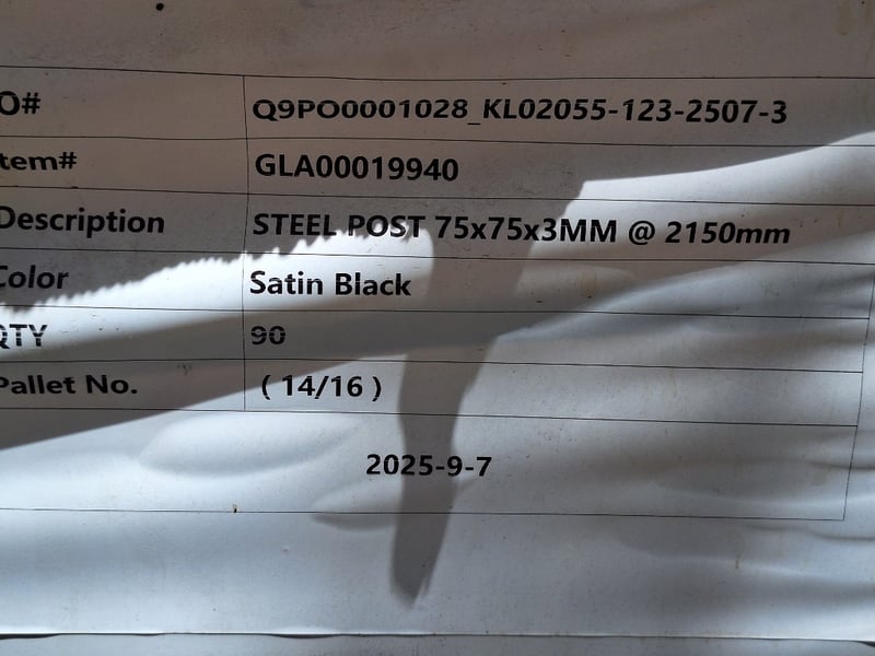 Steel Posts, 75 x 75 x 3mm @ 2150mm, Satin Black, Quantity x 90
