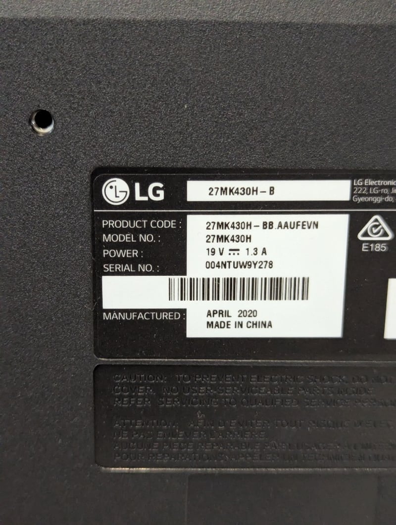 Monitor, LG, model: 27MK430H