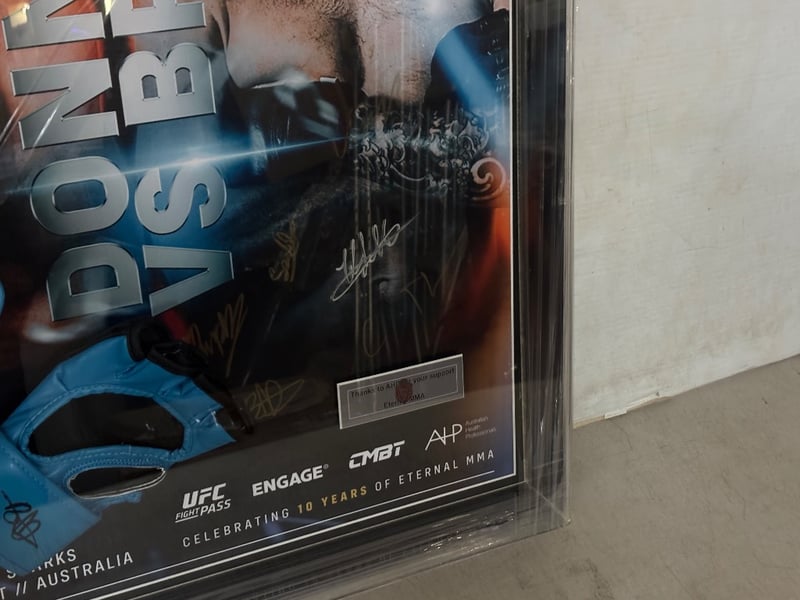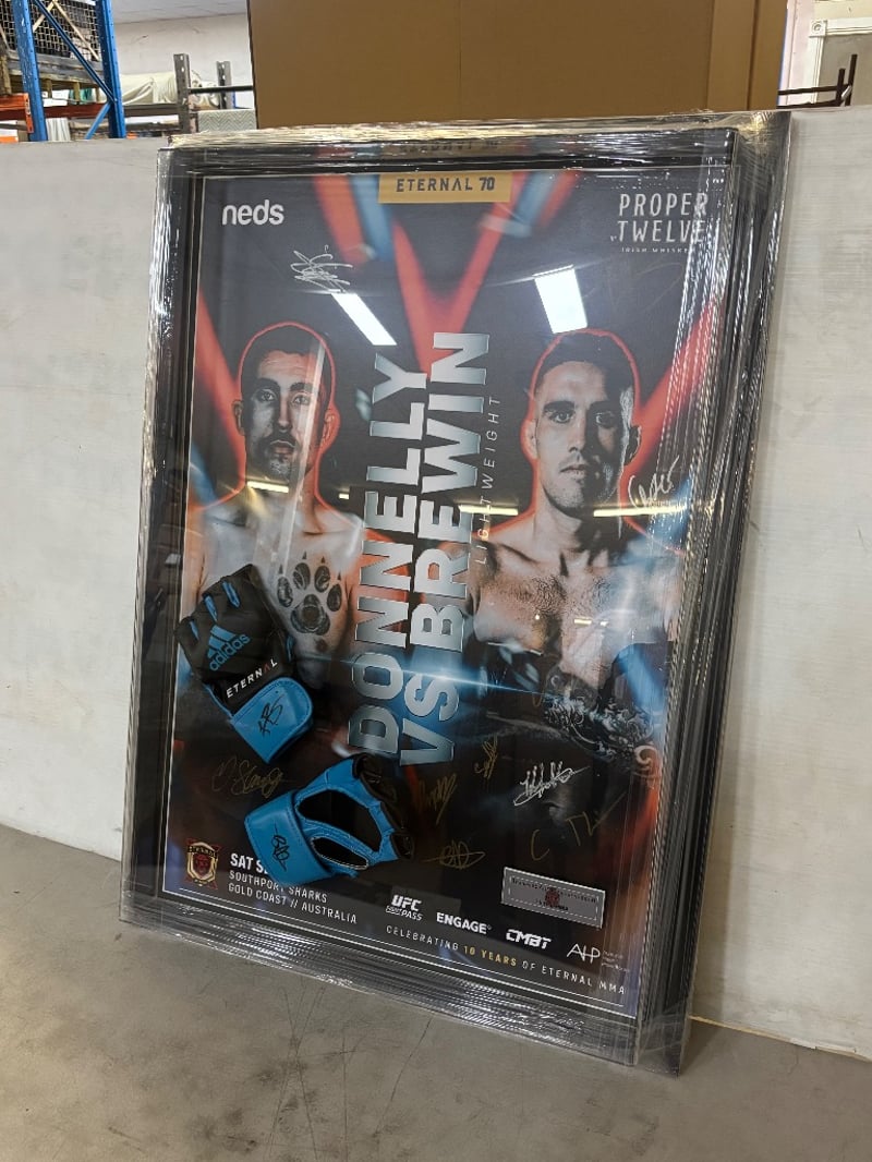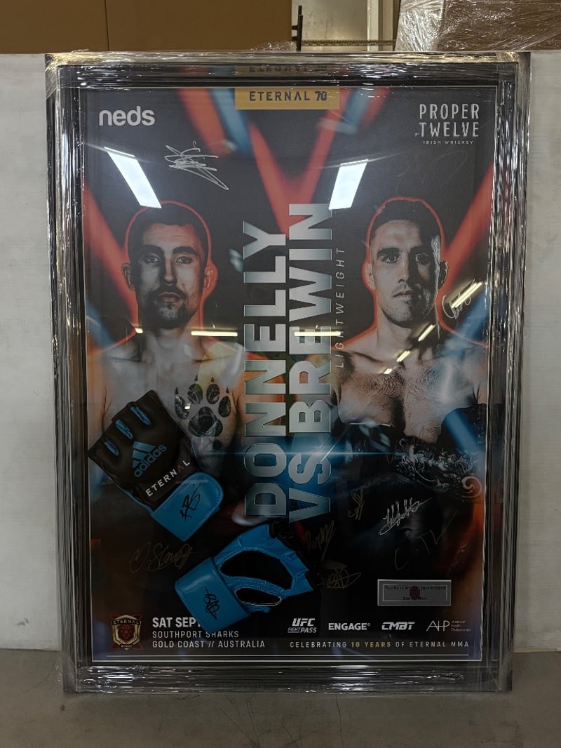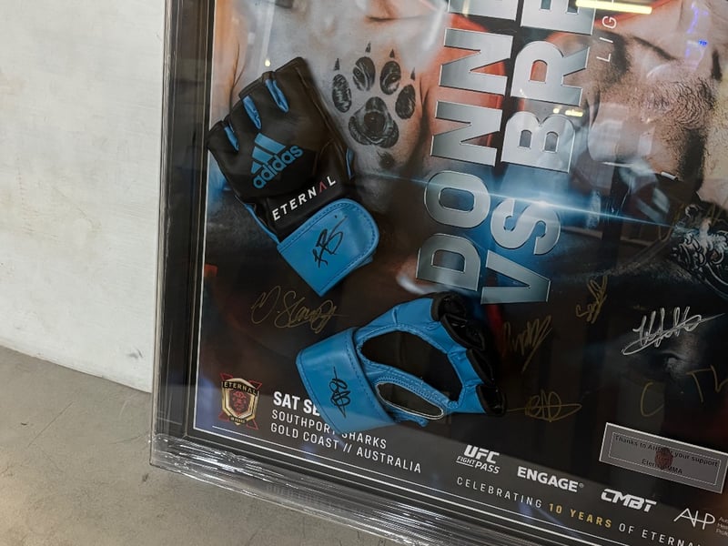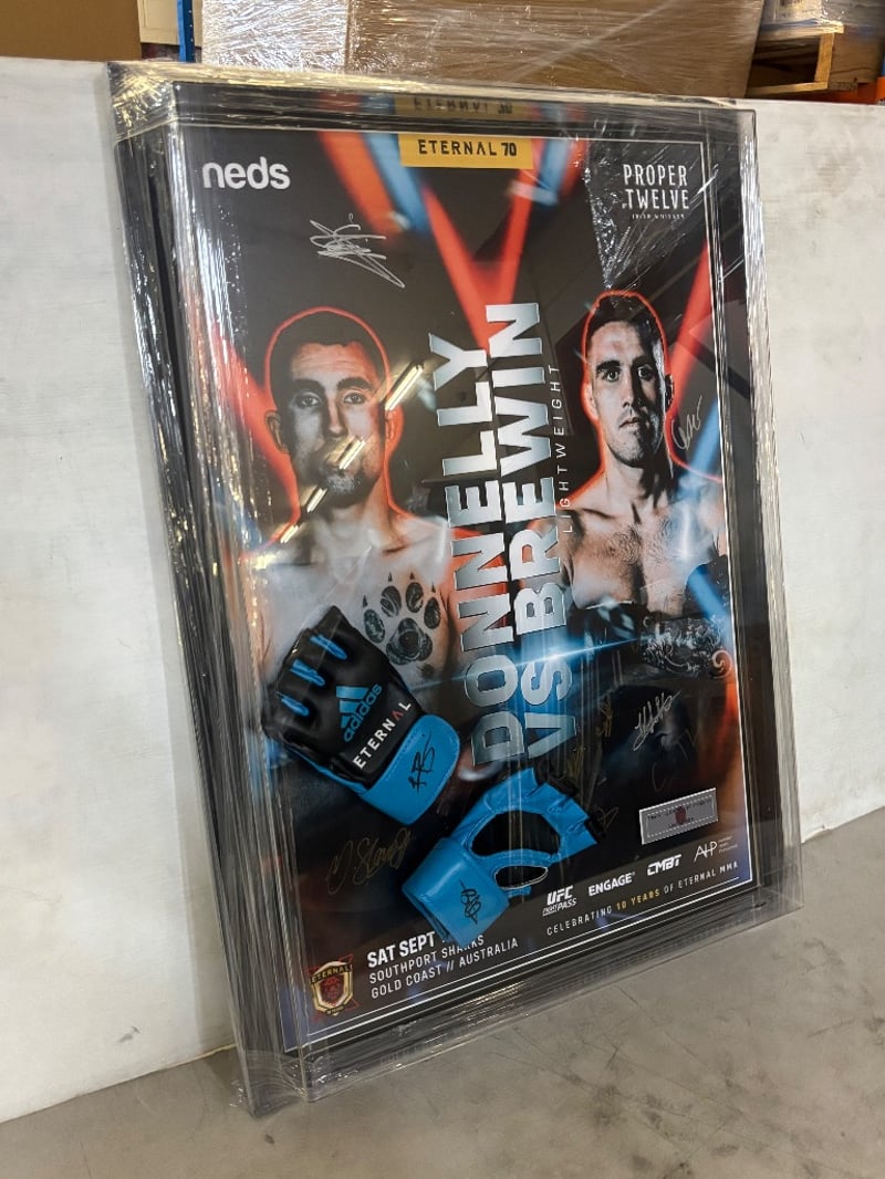 MMA Memorabilia Display, Donnelly vs Brewin Lightweight, Adidas Sparing Gloves, Signed