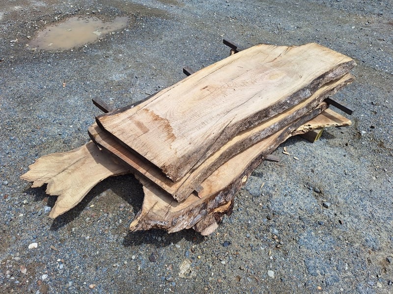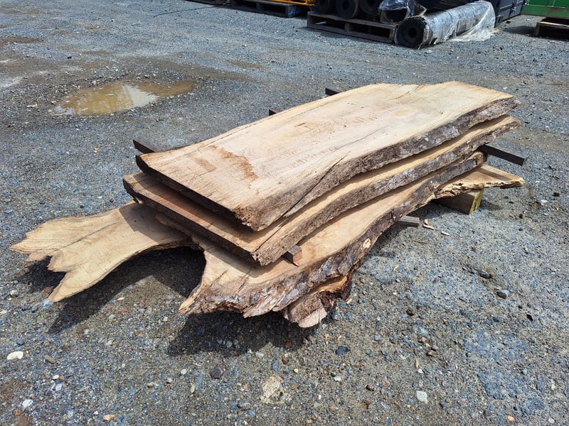 Live Edge Timber Slabs, Rough Sawn, Approximately 40mm Thick, 1500mm (L) x 630mm (W), Quantity x 4