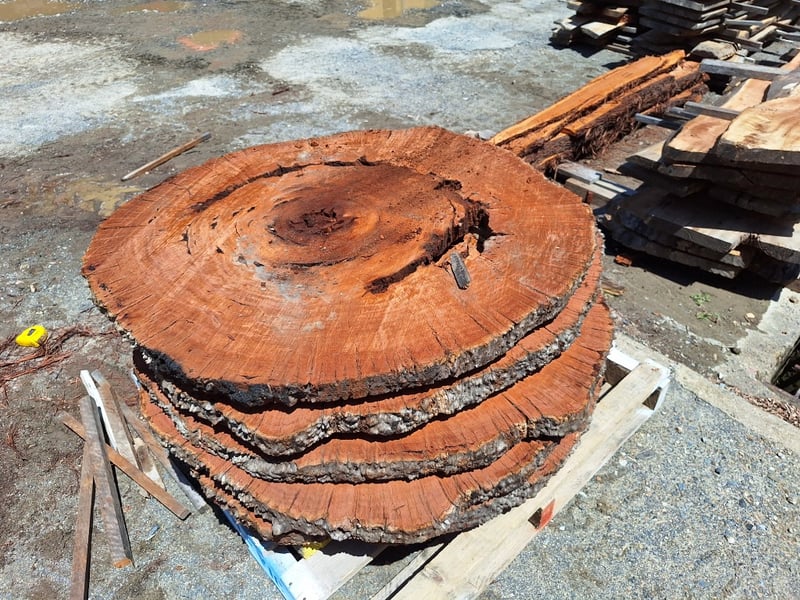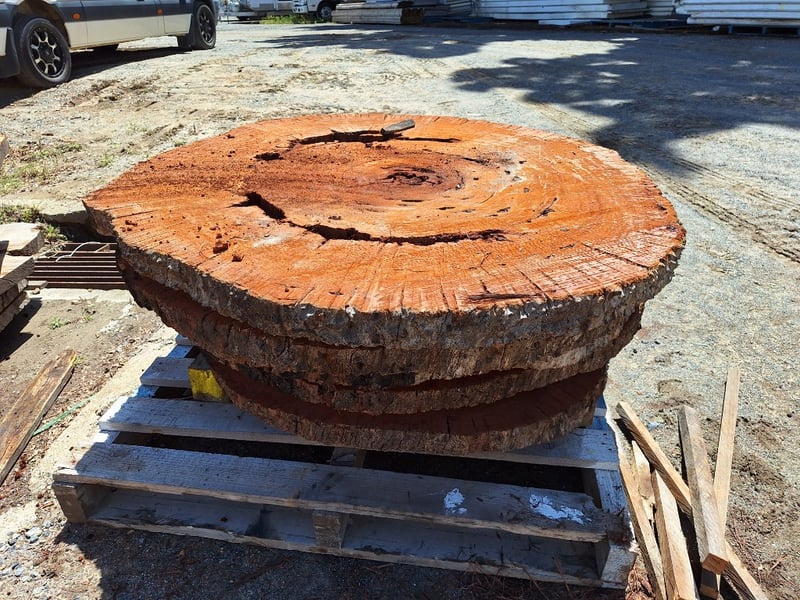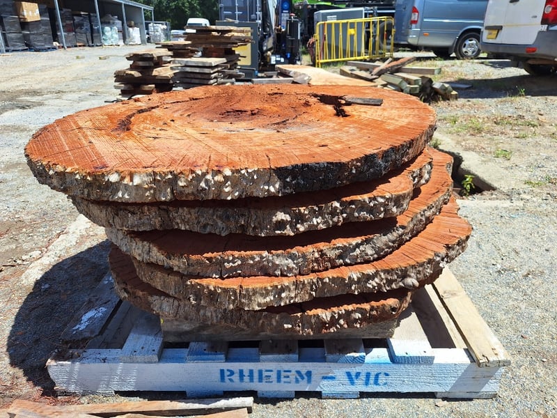 Live Edge Timber Round Slabs, Rough Sawn, Approximately 70mm Thick, 1120mm Diameter, Quantity x 5