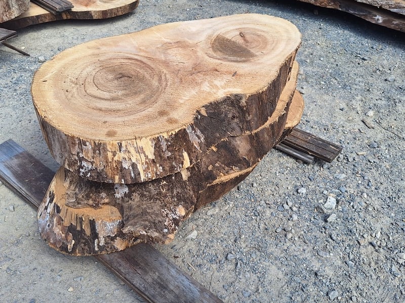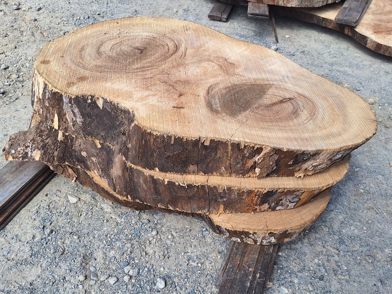 Live Edge Timber Round Slabs, Rough Sawn, Approximately 80mm Thick x 750mm x 430mm