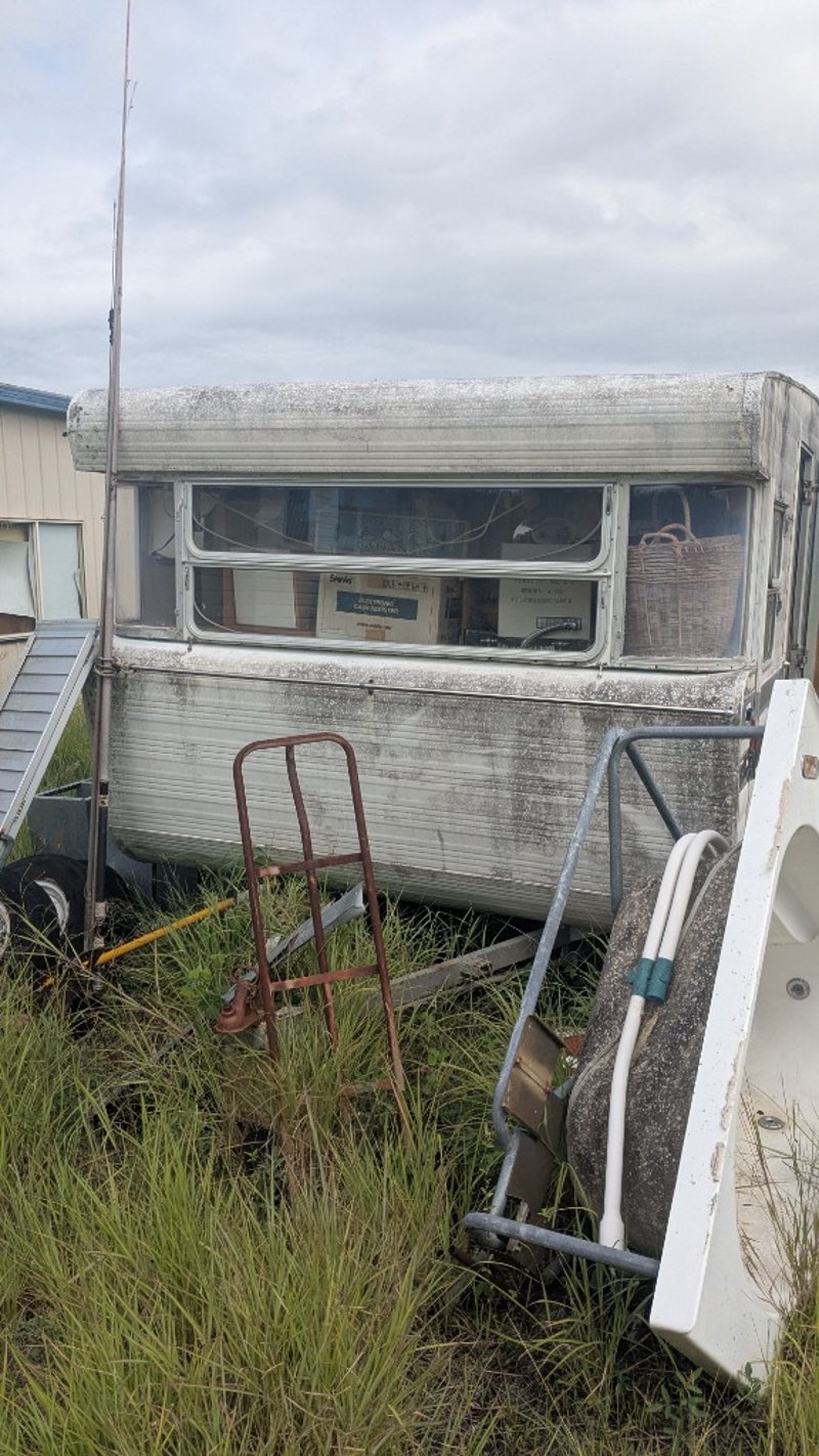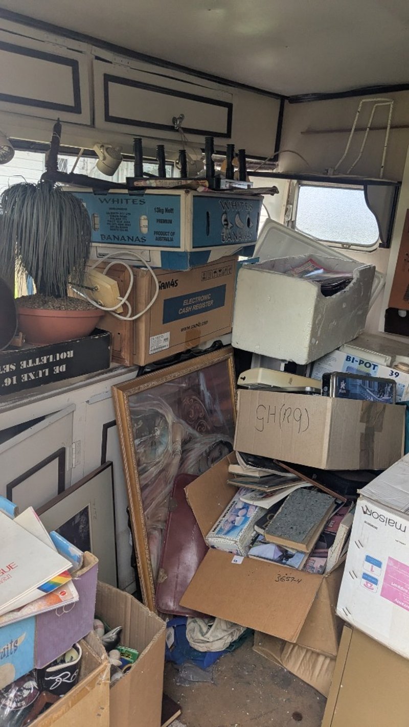 Vintage Style CaravanBrand: Unknown Model: Unknown Vin: B4206Description/Extras: Gas Bottle Holder, Timber Laminate Storage Cabinets, Includes Assorted Household ItemsDimensions: 2400mm(W) x 7700mm(L) x 2100mm (H) NOTE: INSPECTIONS HIGHLY RECOMMENDED