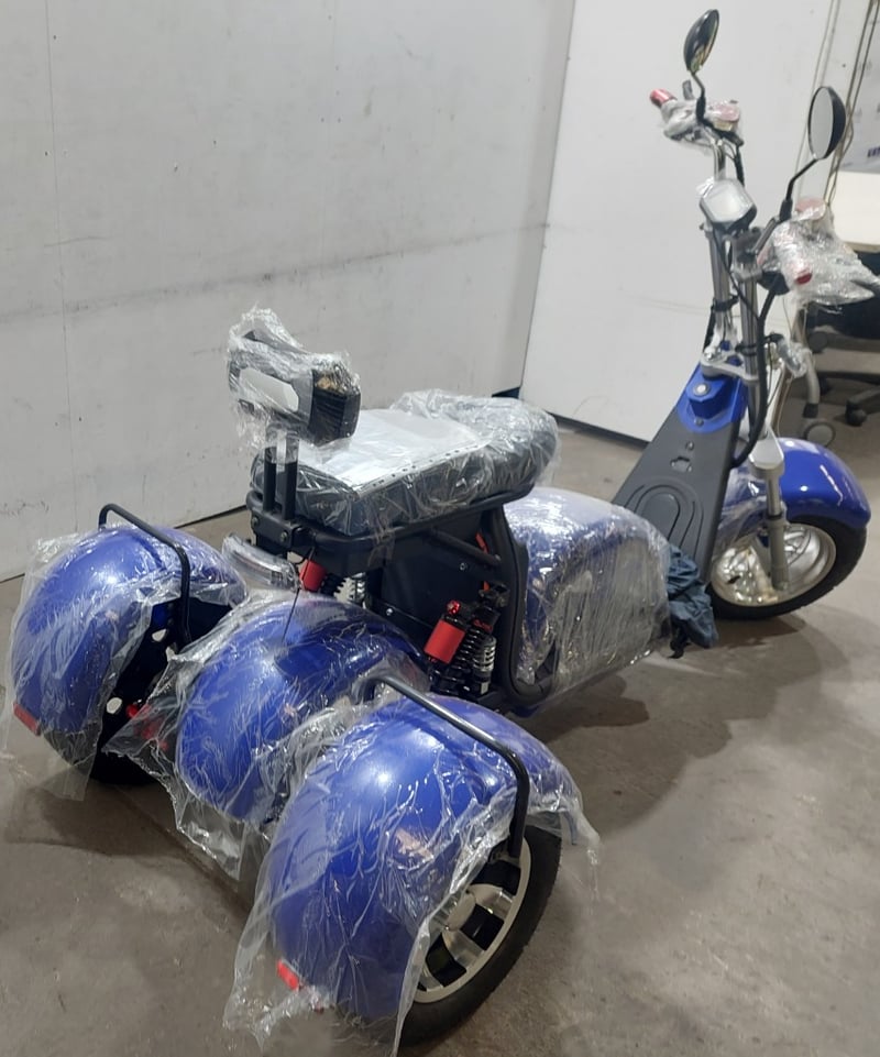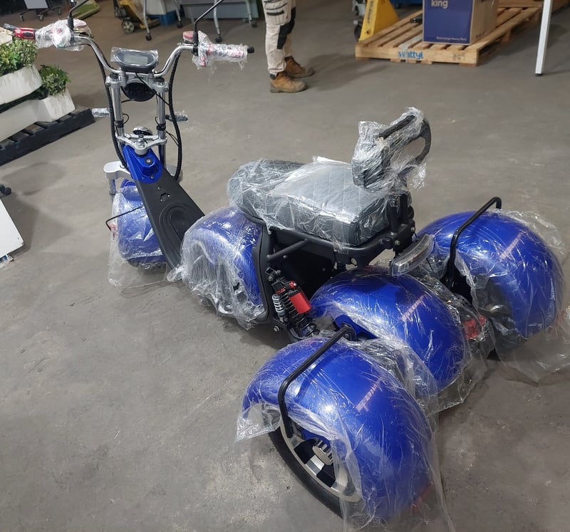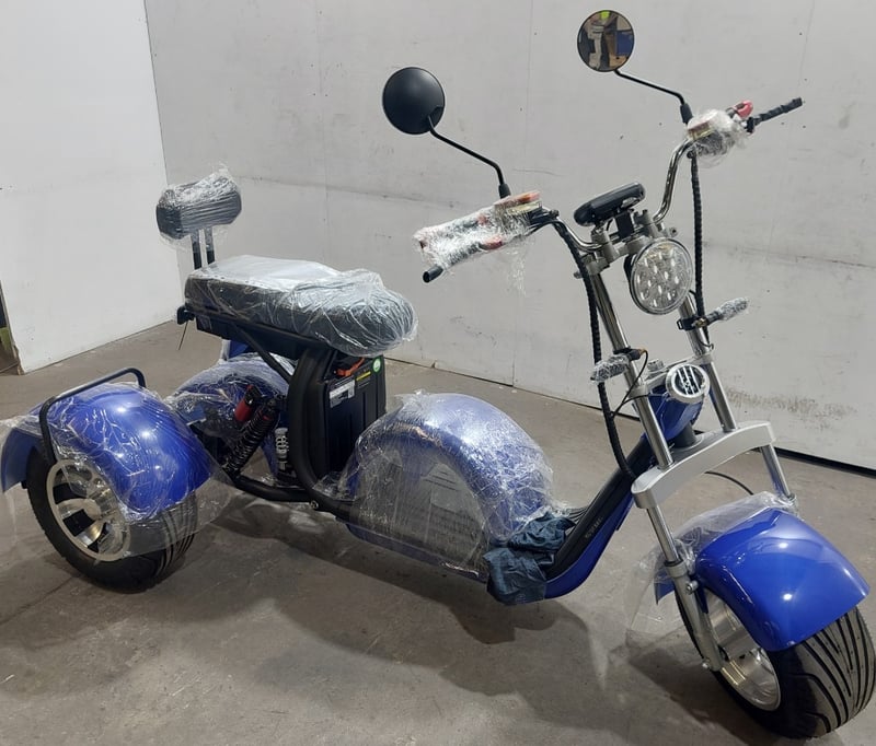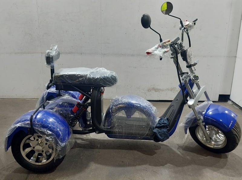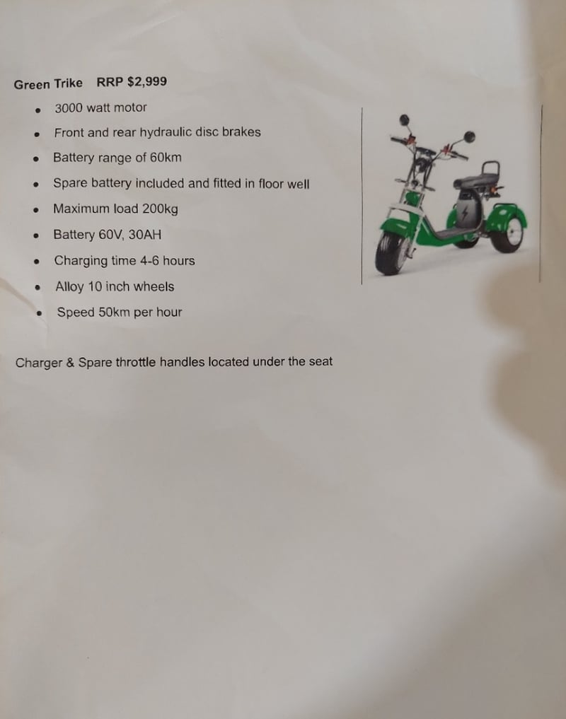 BRAND NEW RRP $2,999Blue trike.3000watt motorFront and rear hydraulic disc breaksBattery range of 60km10 inch alloy wheels50km per hour speedNote: untested