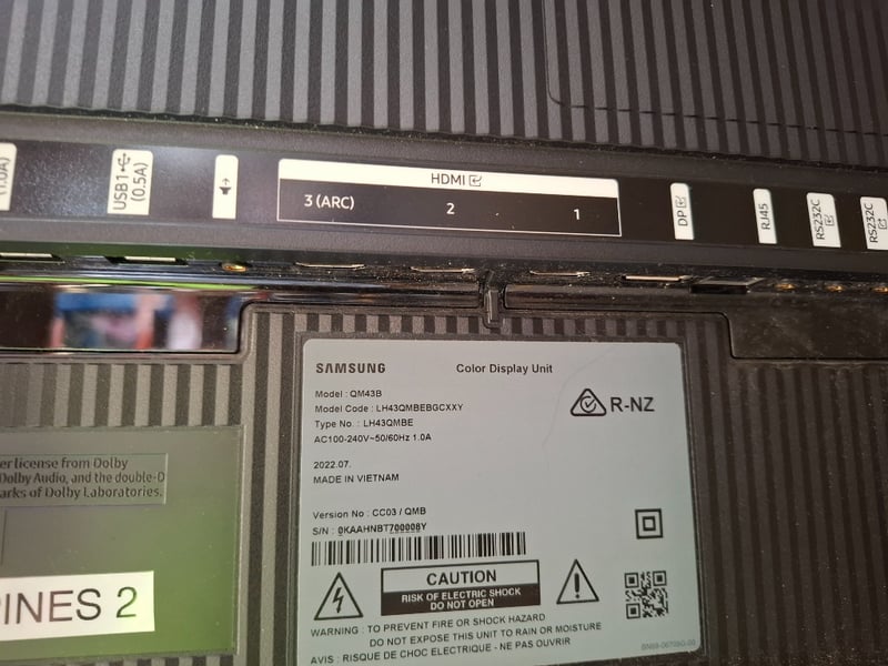 Samsung TV Screen, 1 phase, 10 Amp, black, wall mountDimensions: 965mmW x 560mmD x 70mmH Note: Scratches, no power cords, no remote control