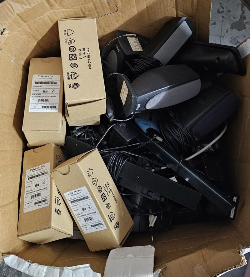 Large Box of PC Power Supplies, PC Speakers and Notebook Cases