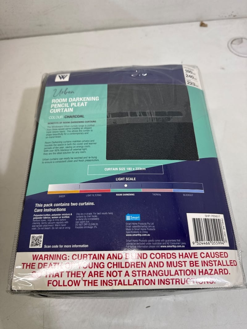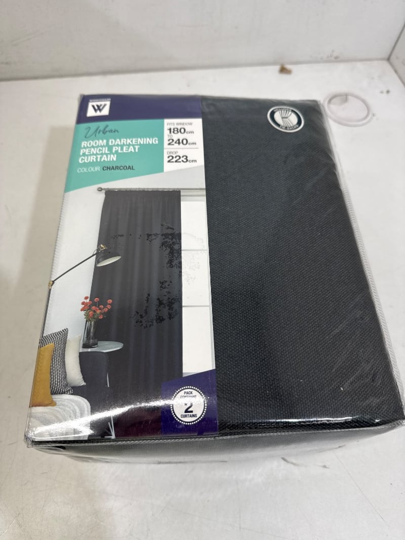 Curtains, Windoware, urban room darkening pencil pleat, colour charcoal, width 180cm - 240cm, drop 223cm.Quantity - 8, sold as lot