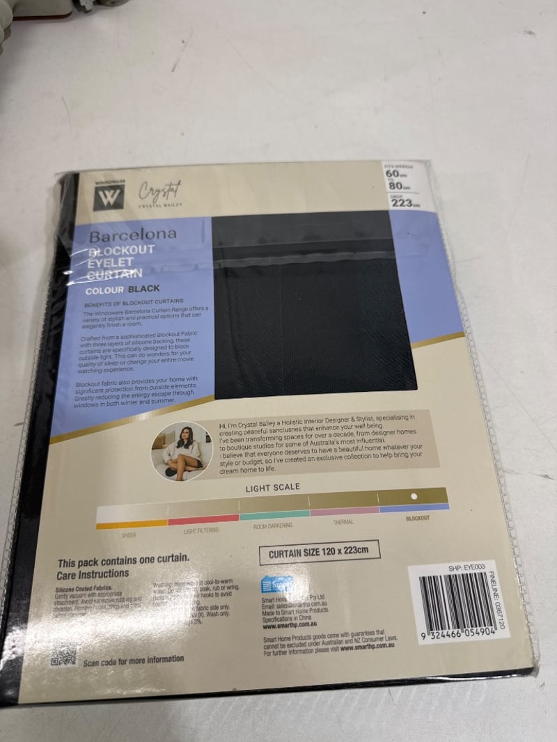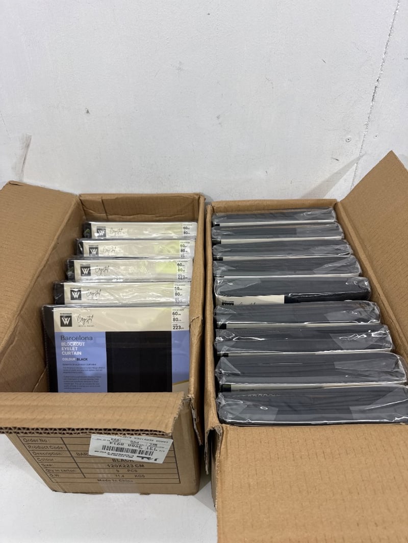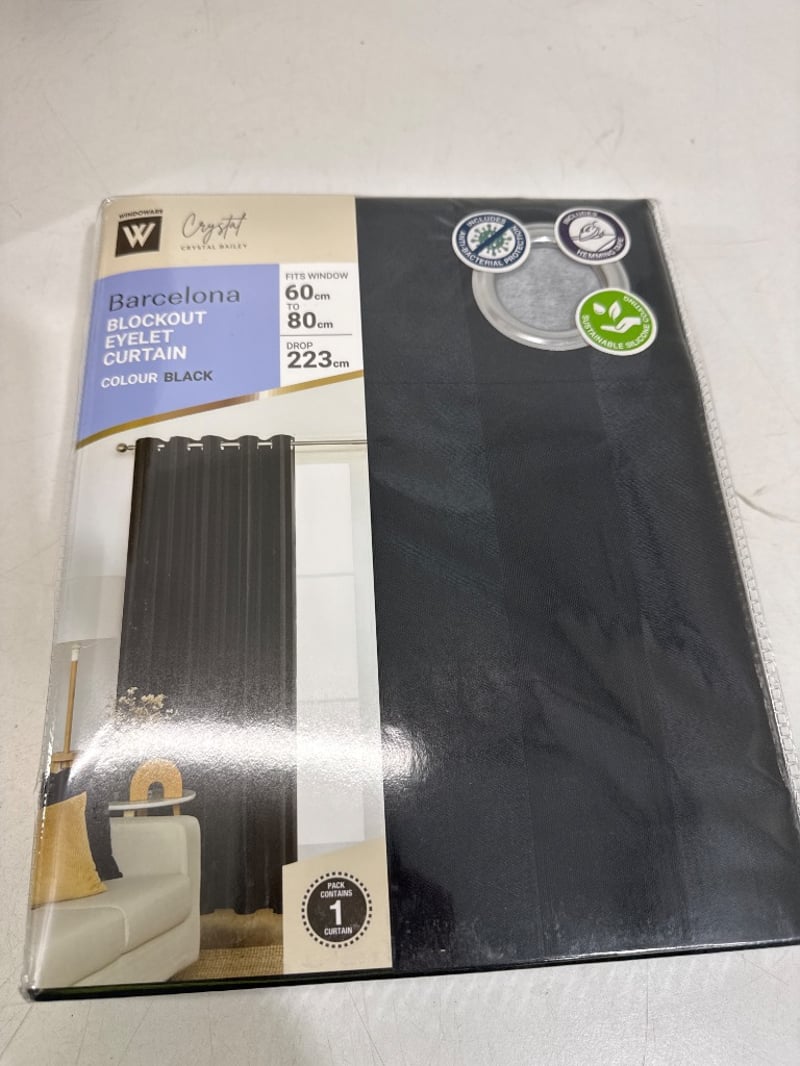 Curtains, Windoware, Barcelona blackout eyelet, colour - black, width 60cm - 80cm, drop 223cmQuantity- 14, sold as lot