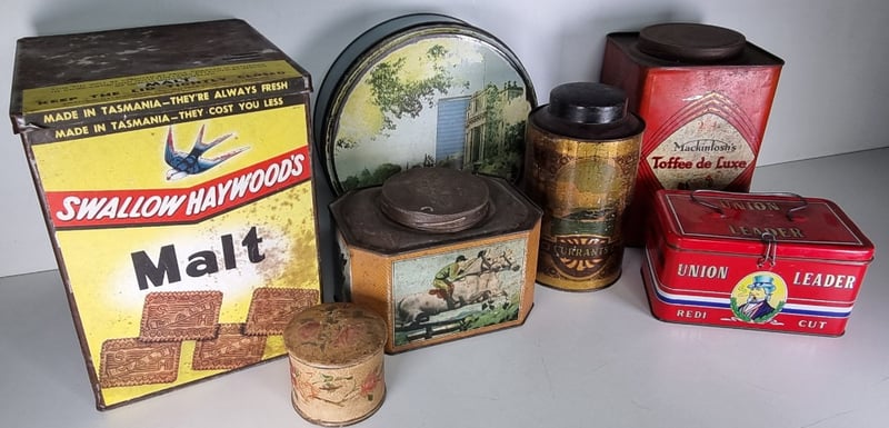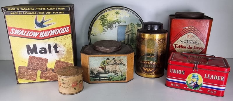 Vintage Tins, Cookie, Coffee and, Tobacco. QTY 7