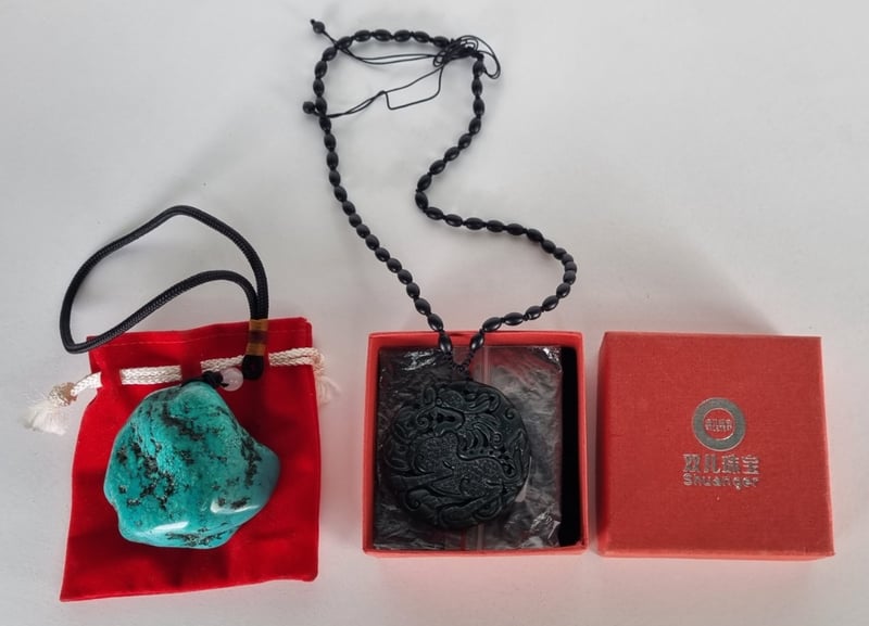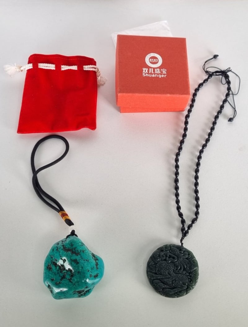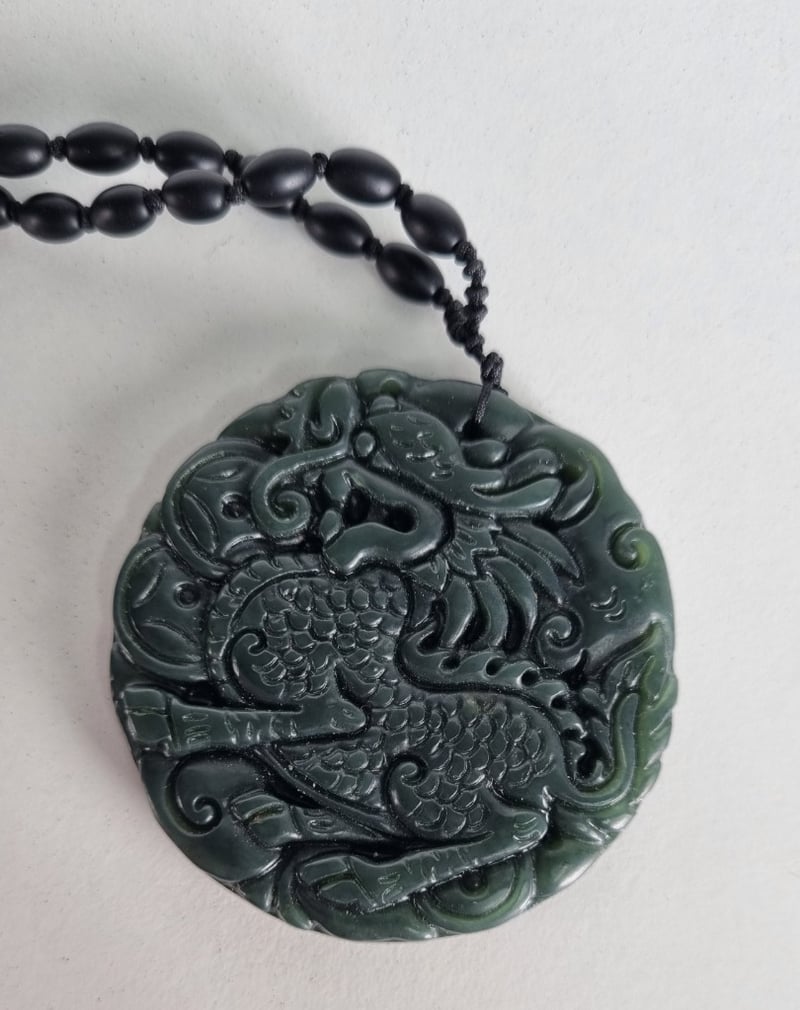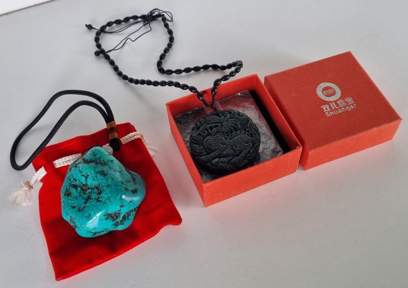 Necklace & Pendant, Turquoise Pendant And Carved Block Jade Medallion.