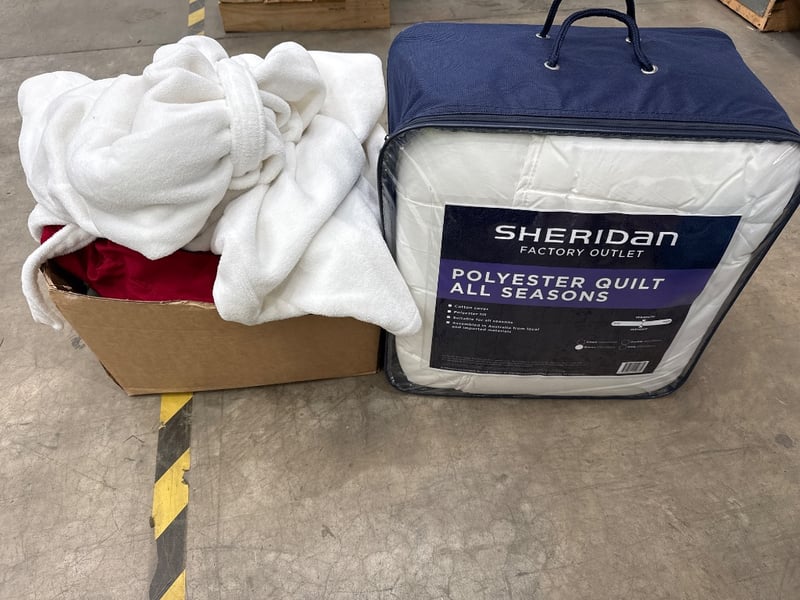 Assorted Bedding, brands include Sheridan, ikea and linen House, items include bed spreed, polyester quilt all season, dressing gown.