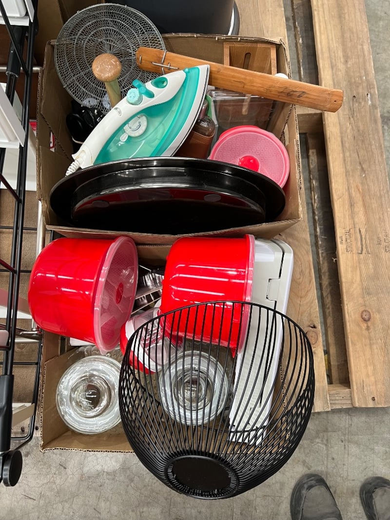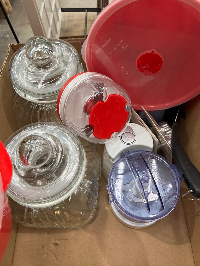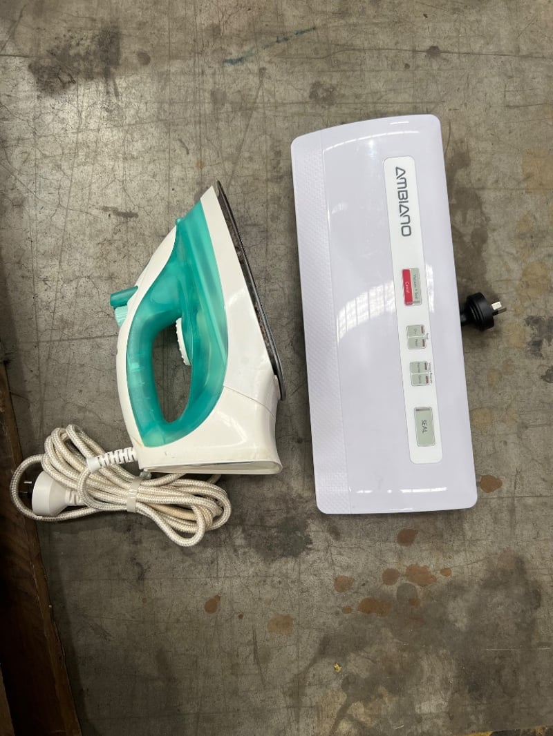 Assorted kitchen/ laundry supplies, including; jars, iron, paper towel holder, containers, vacuum sealer etc brands include; Ambiano, Phillips, Decor etc