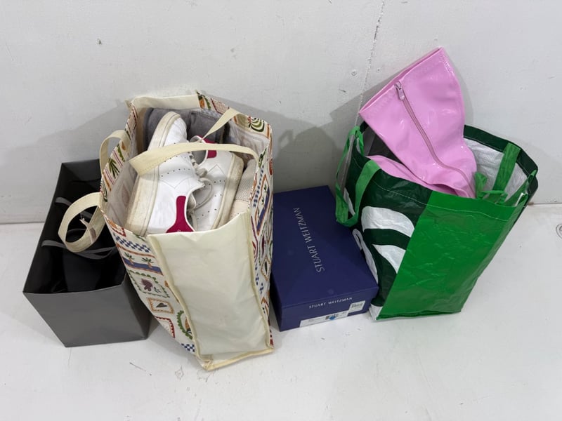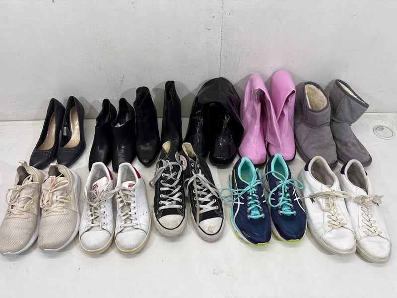 Assorted Shoes, sizes include 38, women’s US 7, Women’s US 9,30, 10 ect. Brands include Stuart Weitzman, Converse, adidas ect.
