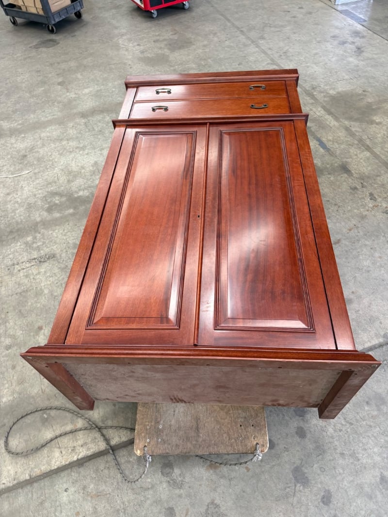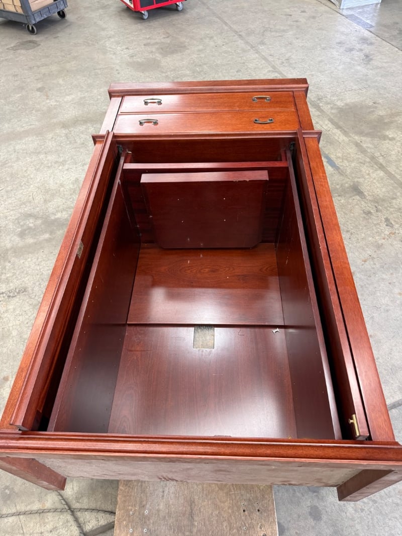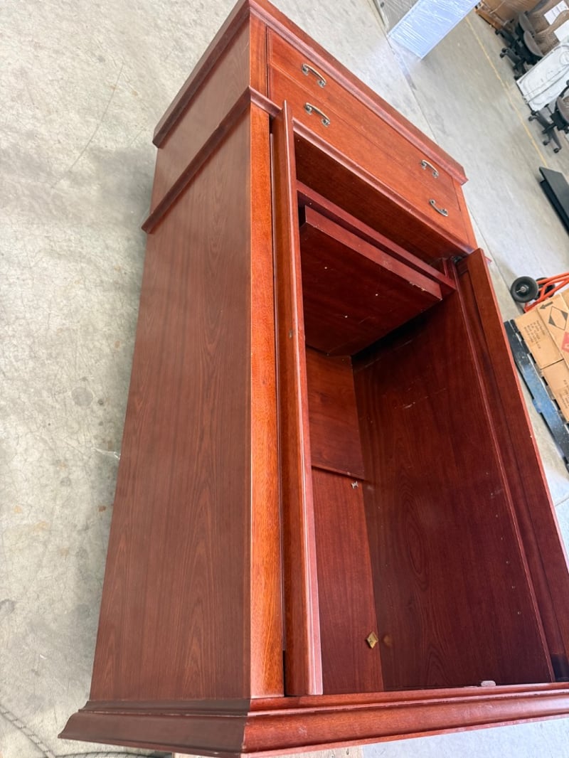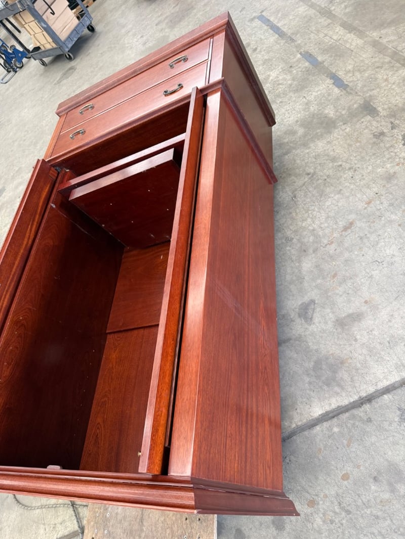Wardrobe, timber type, 2 door, 2 draws, doors fully open and slot in.