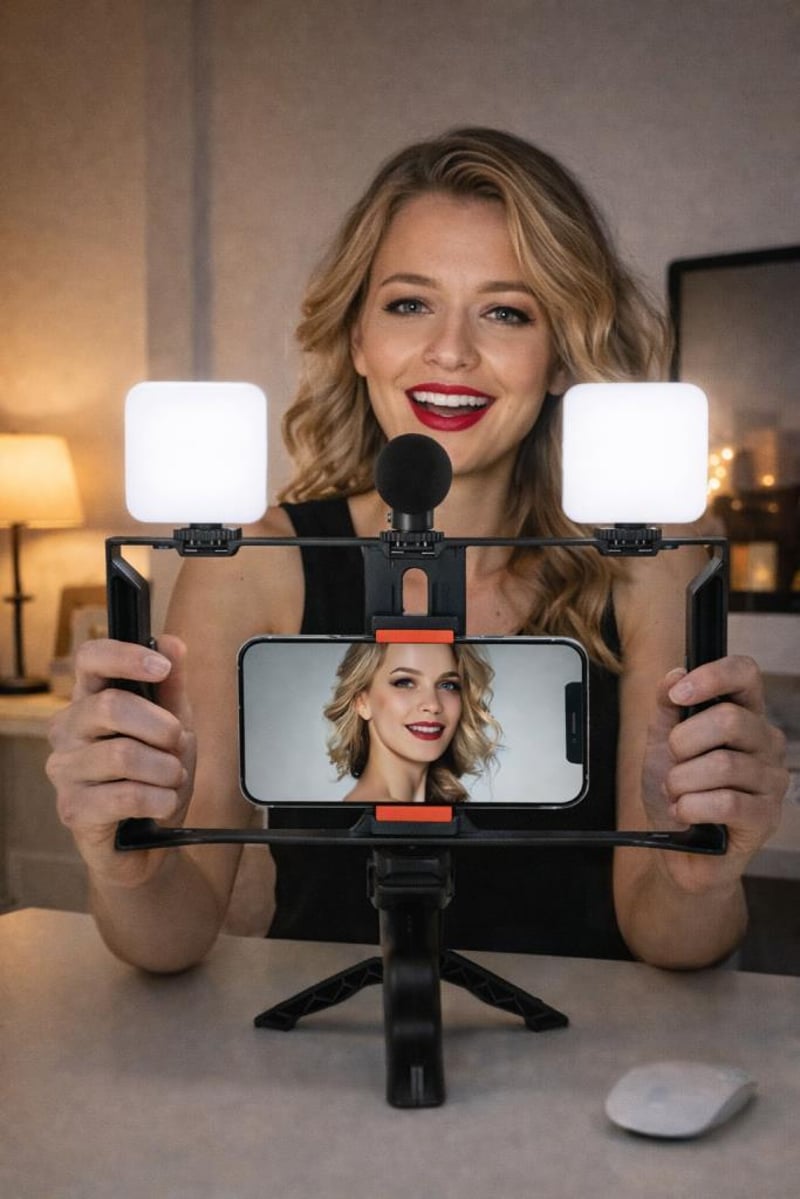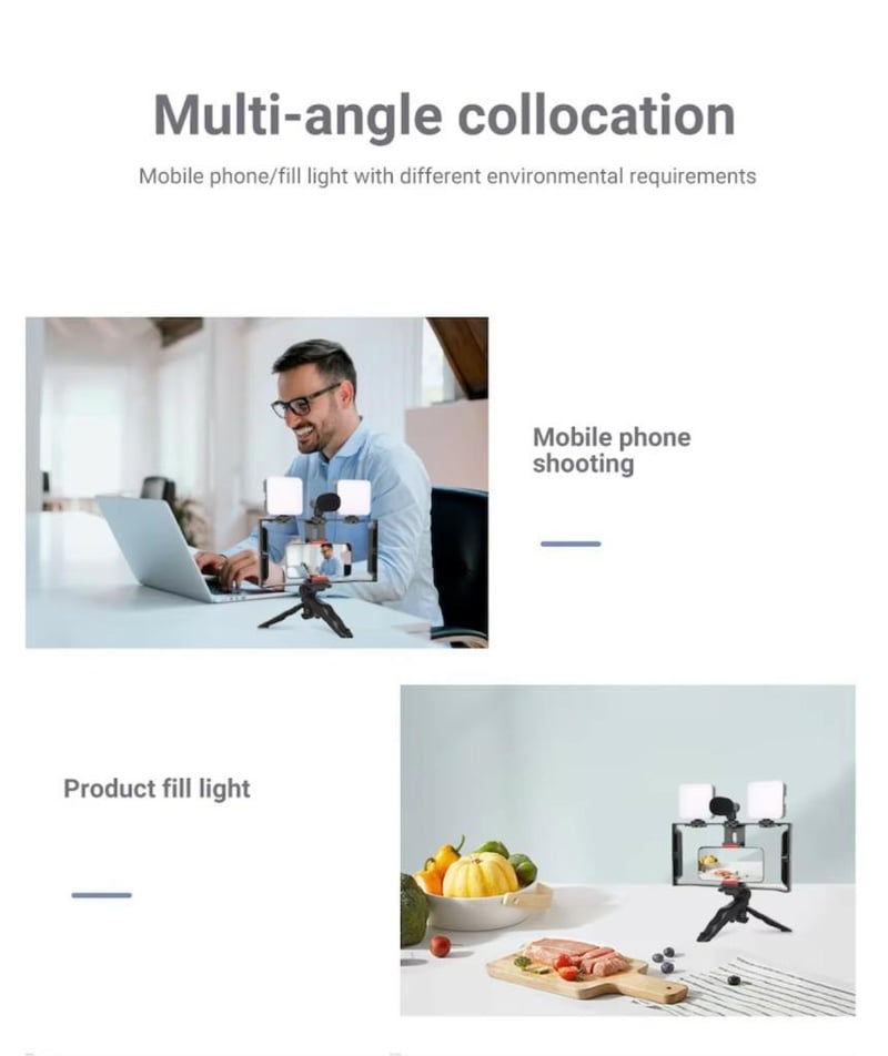 Selfie Stick Vlog Tripod Home Blog Camera Kit for Vlogging All in One Outdoor Kit Dual 7w LED Lights and Microphone Phone Clip and Tripod Stand Great Content Creation Set-Up Support mobile phone size 7-9.3cm width Stand Height Approx 25cm (7 x AAA Batteries included) (BRAND NEW IN BOX) (Sometimes in the creation of images and videos there may be very small differences in the product itself or size comparison, so these images are used only for the visual effect of the product shown, however the exact product with its specifications and size is always shown in the later photos so please be aware of this.)