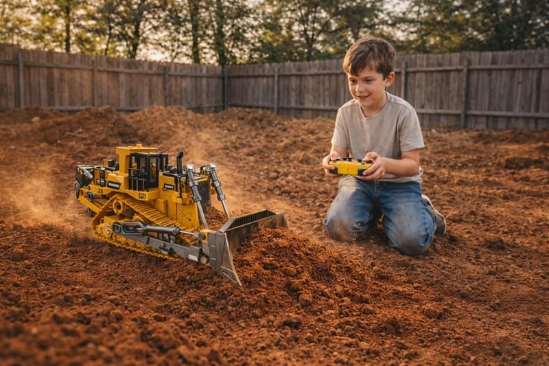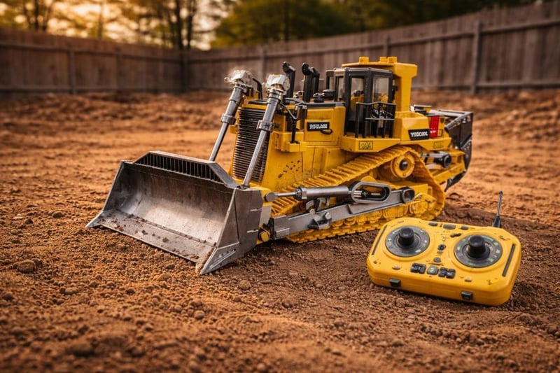 RC Bulldozer 2.4 GHZ 9 Channel Alloy & Plastic Constructions 360-degree Rotating Cabin Multiple Direction Control rubber tracks Sound and Lighting Function Multiple Direction Function Approx 24cm Length One Button Demo Mode (Remote Batteries not included) (NEW IN BOX) YELLOW (Sometimes in the creation of images and videos there may be very small differences in the product itself or size comparison, so these images are used only for the visual effect of the product shown, however the exact product with its specifications and size is always shown in the later photos so please be aware of this.)