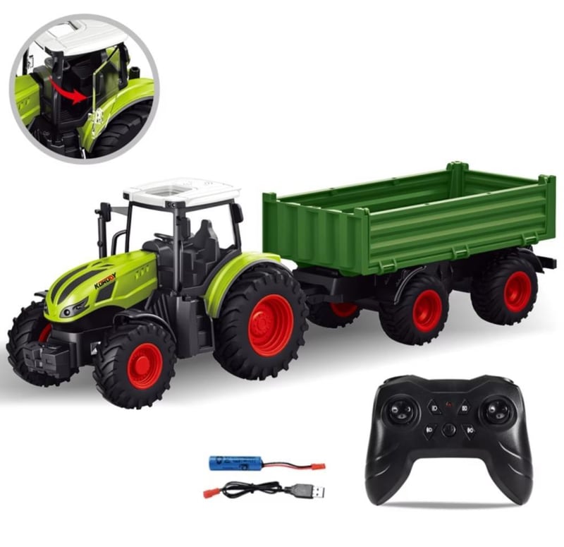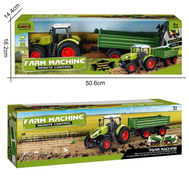 RC Farm Tractor and Trailor Tipping Dump Trailer 1/24 Scale 2.4G Electric Agricultural Machine Transport Vehicle With Lights & sound Long Play Time 25 Metre Remote Distance Approx 41cm in Length USB Charging Cable Awesome Cabin Detail trailer drop sides and Tilt 2 x AA Remote Batteries not included (BRAND NEW IN BOX) (Sometimes in the creation of AI pictures and videos there may be very small differences in the product itself or size comparison, so these images are used only for the visual effect of the product shown, however the exact product with its specifications and size is always shown in the later photos so please be aware of this.)