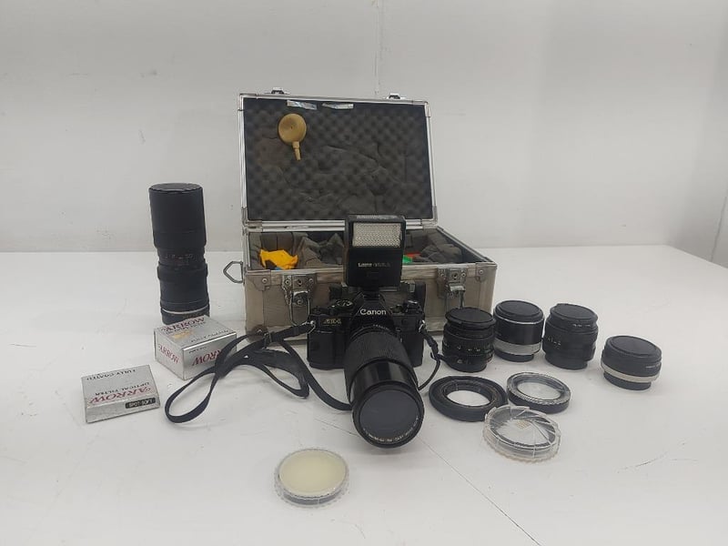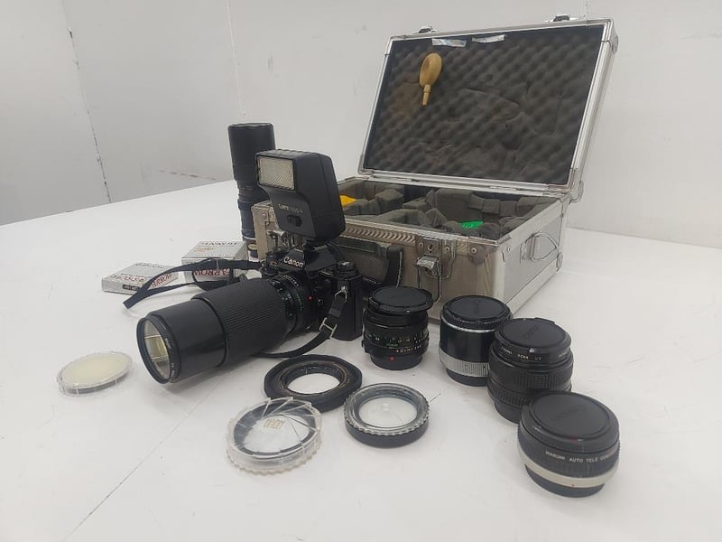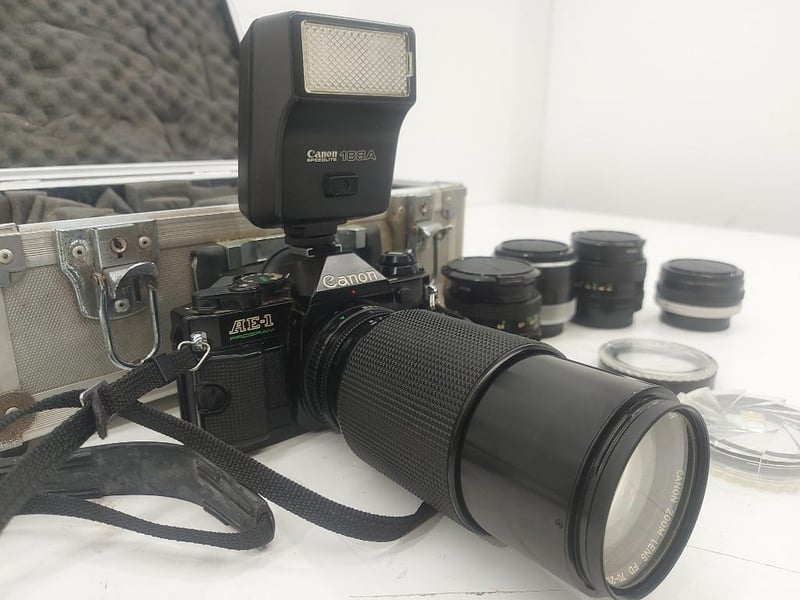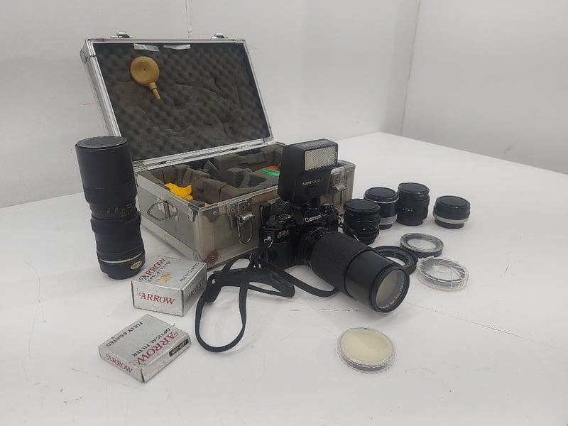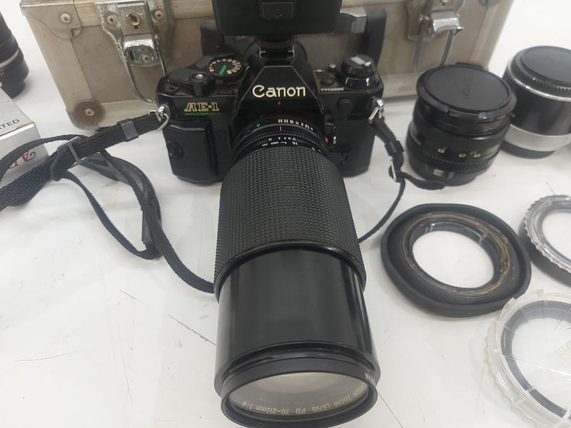 Camera, Canon, Model AE-1 Program, ×6 Lenses, Optical Filter, Arrow, With Case