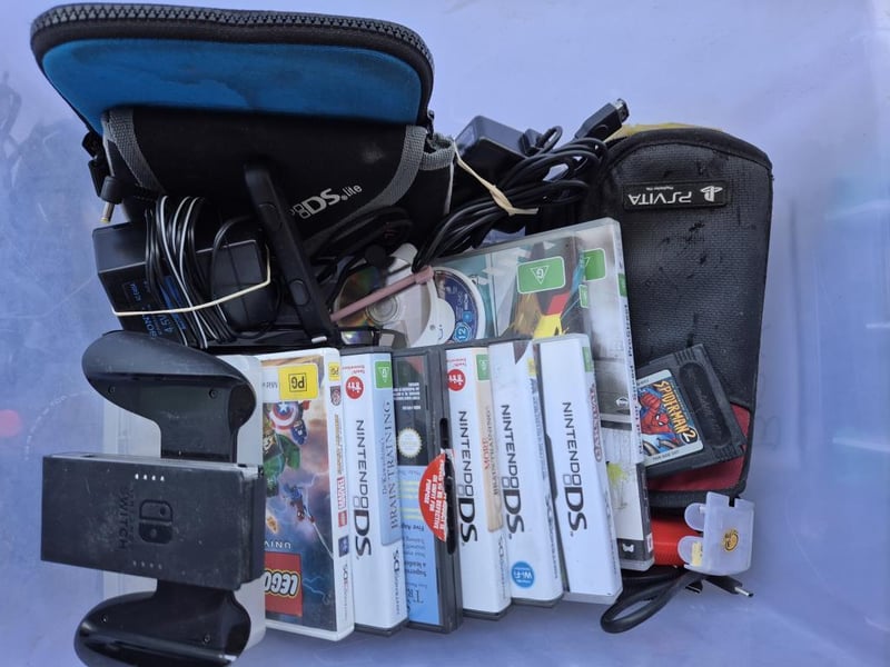 Video gaming handheld bulk lot of gaming accessories, games, chargers and cases - untested