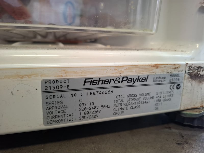 Fisher and Paykel fridge/freezer, 2 horizontal doors Dimensions: 179 cmW x 65cmD x 168cmH Note: Working condition unknown, cleaning required, wear and tear